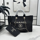 CC Deauville Tweed Bag Black Leather Gold Hardware 25