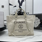 CC Deauville Tweed Bag Light Beige Leather Silver Hardware 9