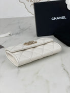 CC FLAP CARD HOLDER 11 WHITE GRAINED CALFSKIN GOLD ICON