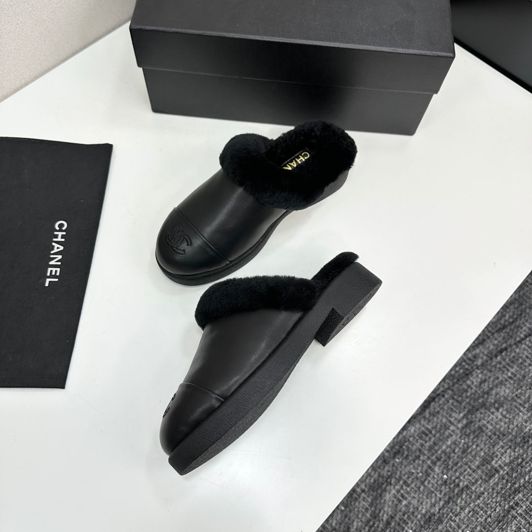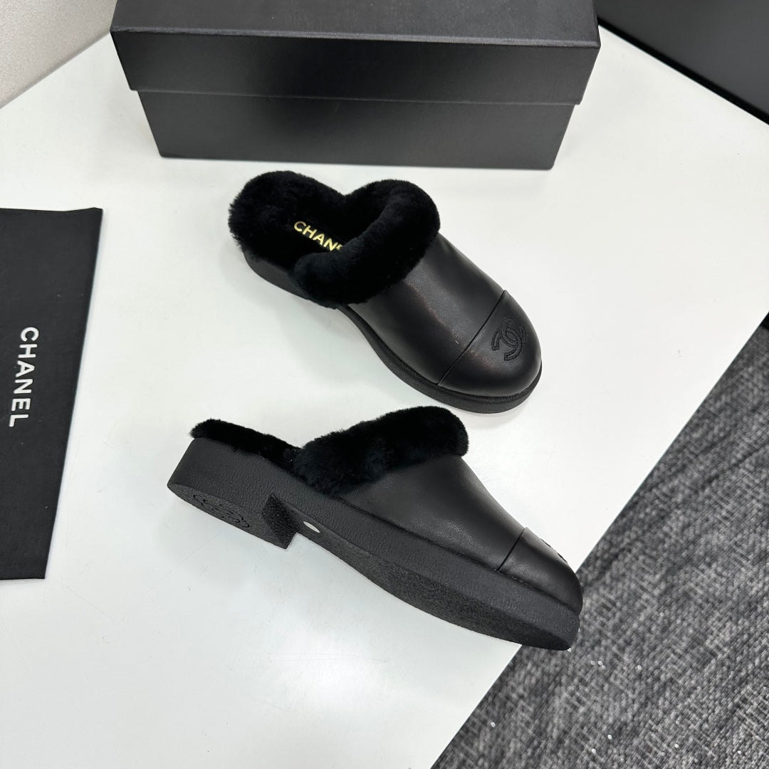 CC furry mule black cowhide and wool 532573