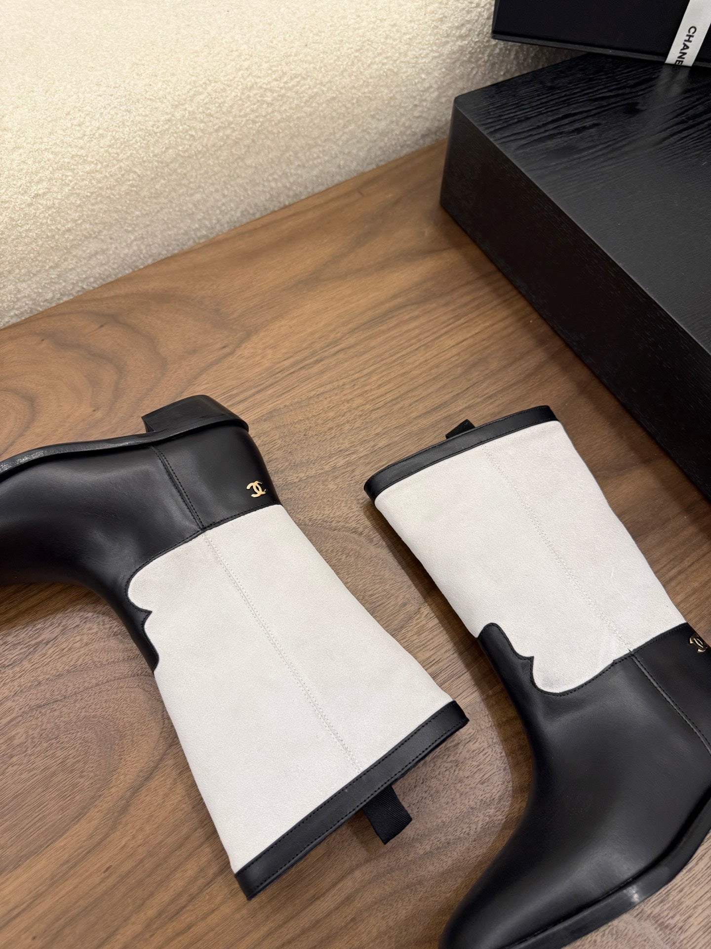 CC Short Boot Black White Calfskin 366071