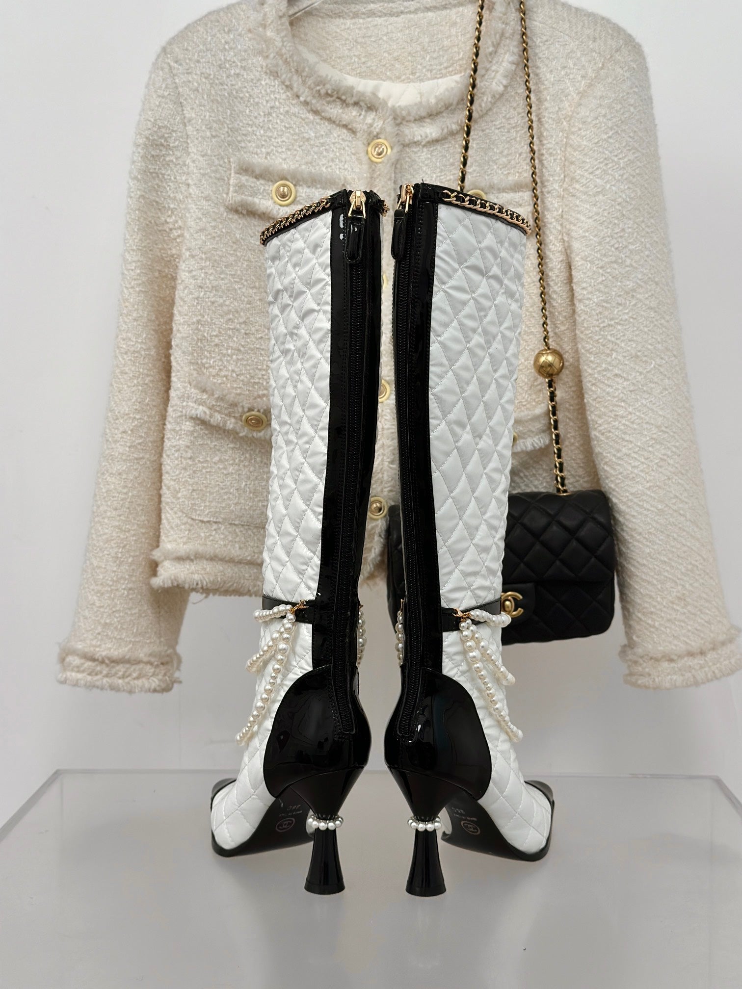 CC High Boots 80mm White Wrinkled Quilted Calfskin