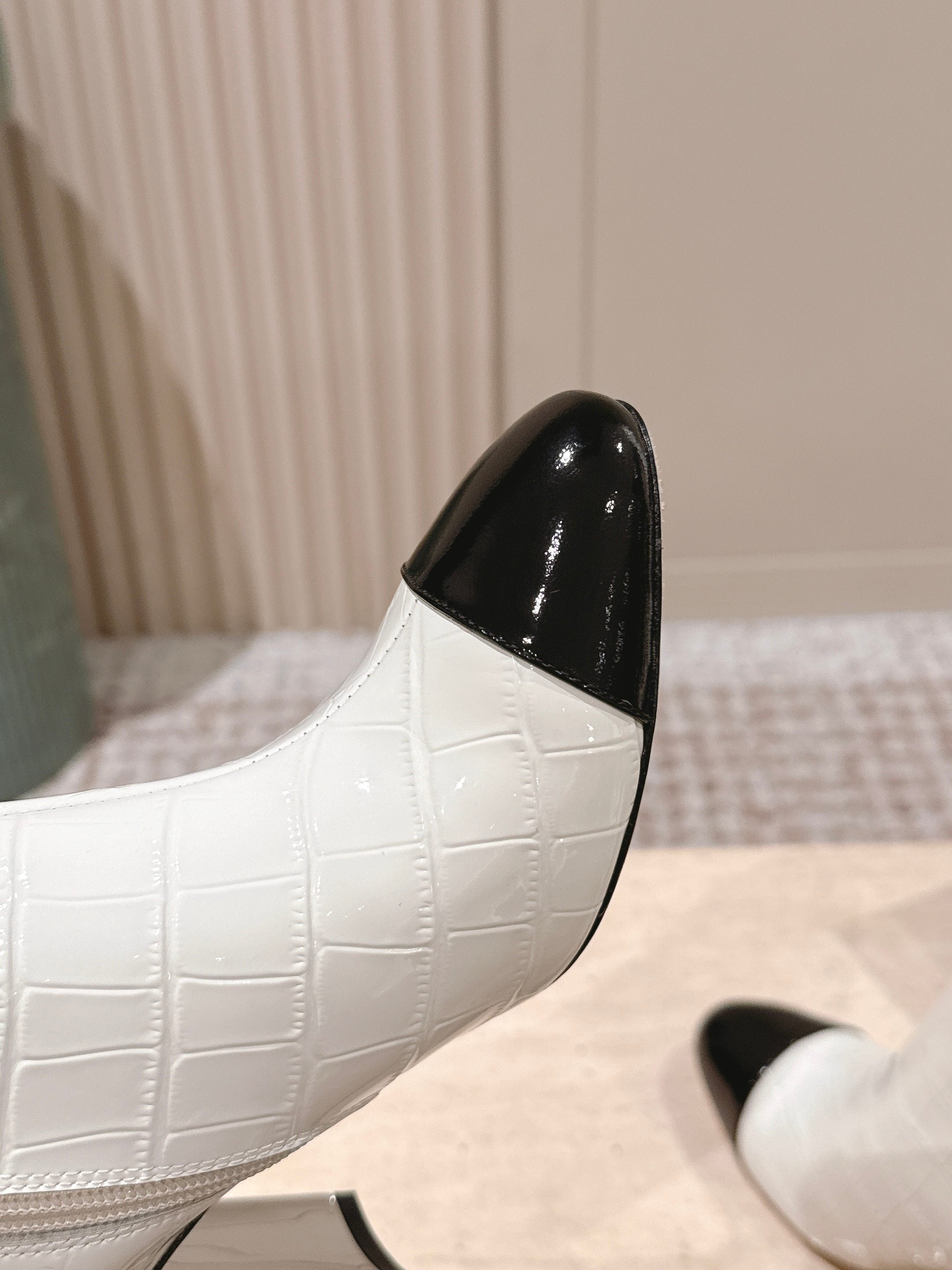 CC high-heeled ankle boots white black patent calfskin 532830