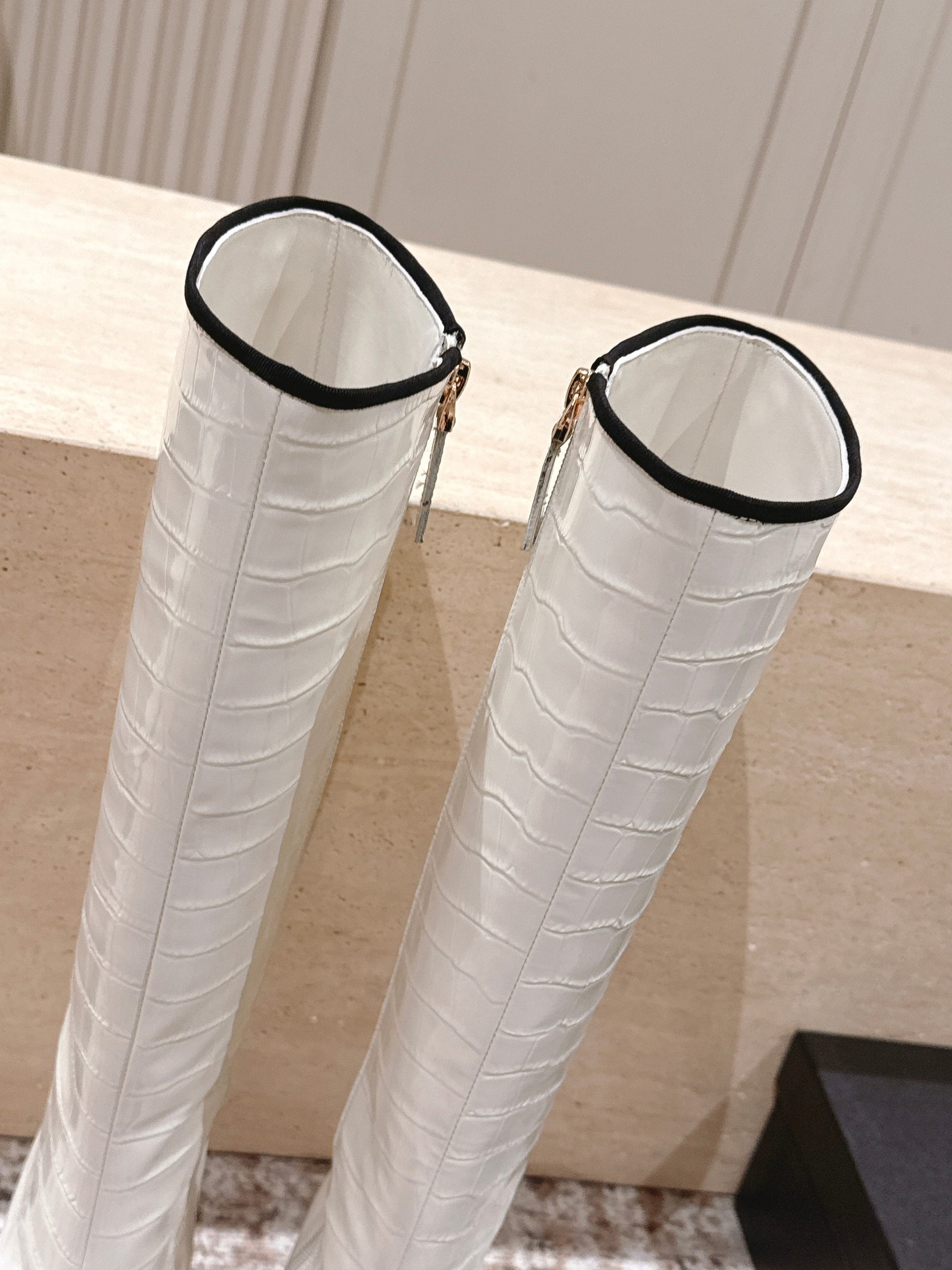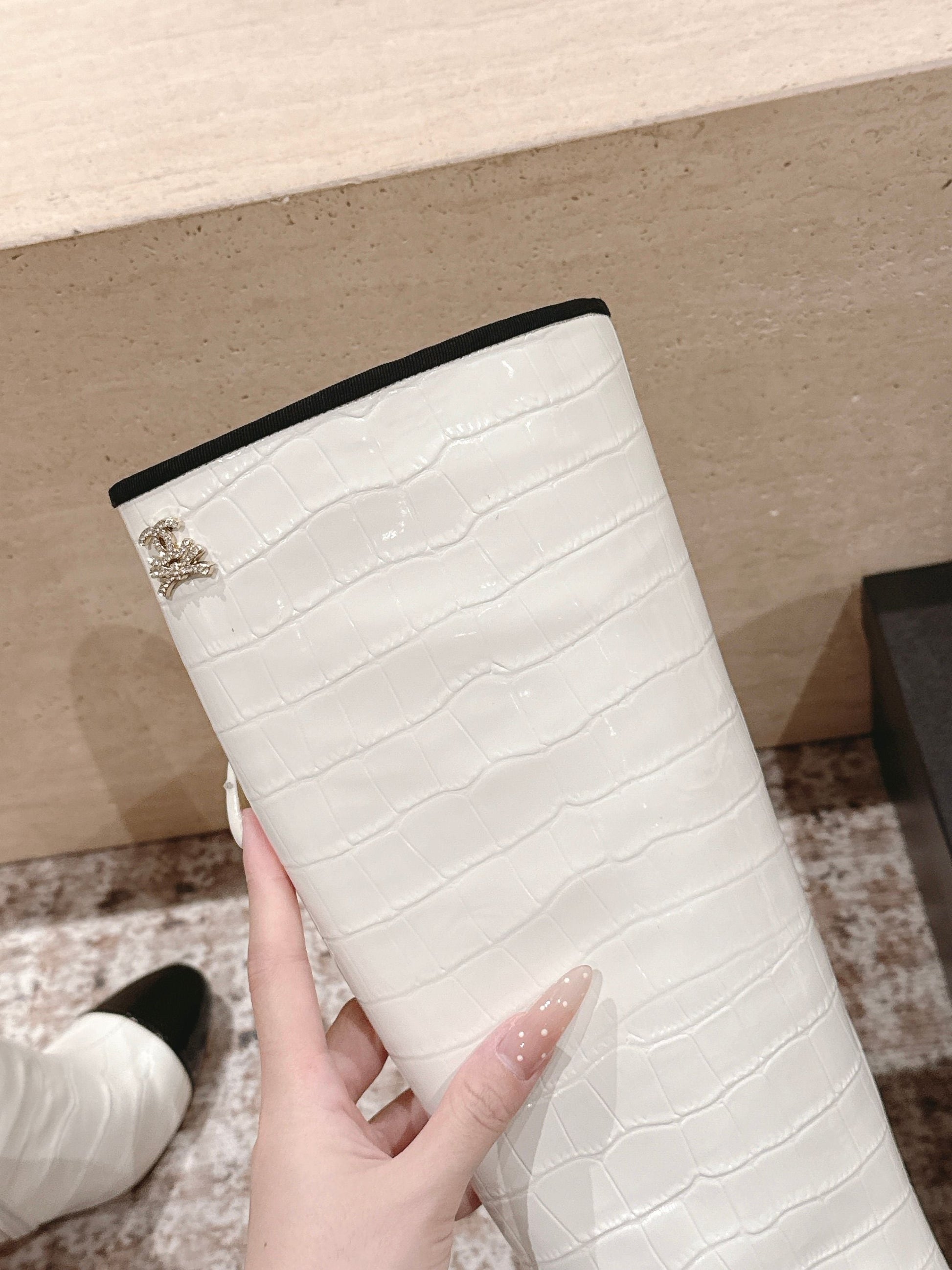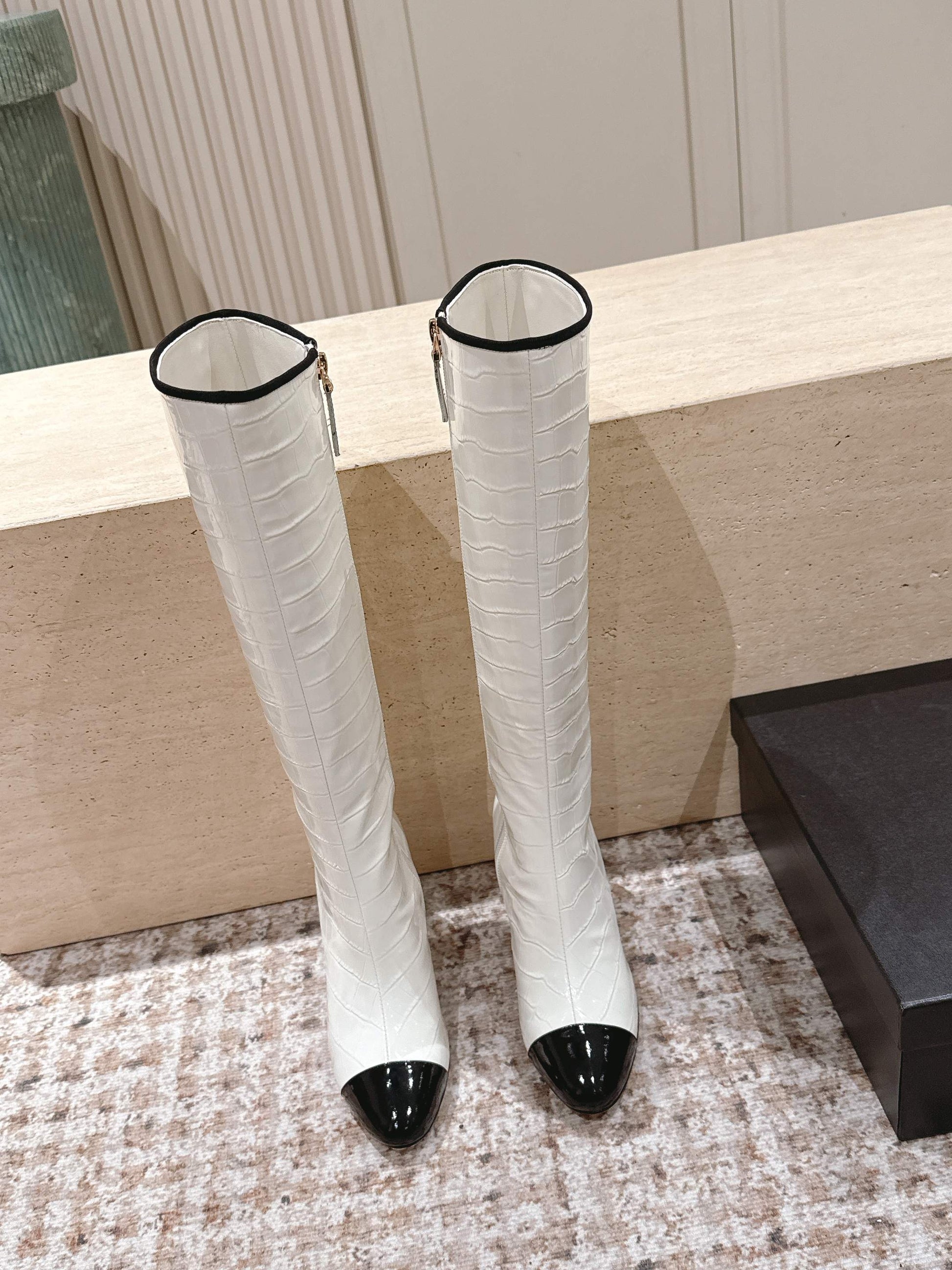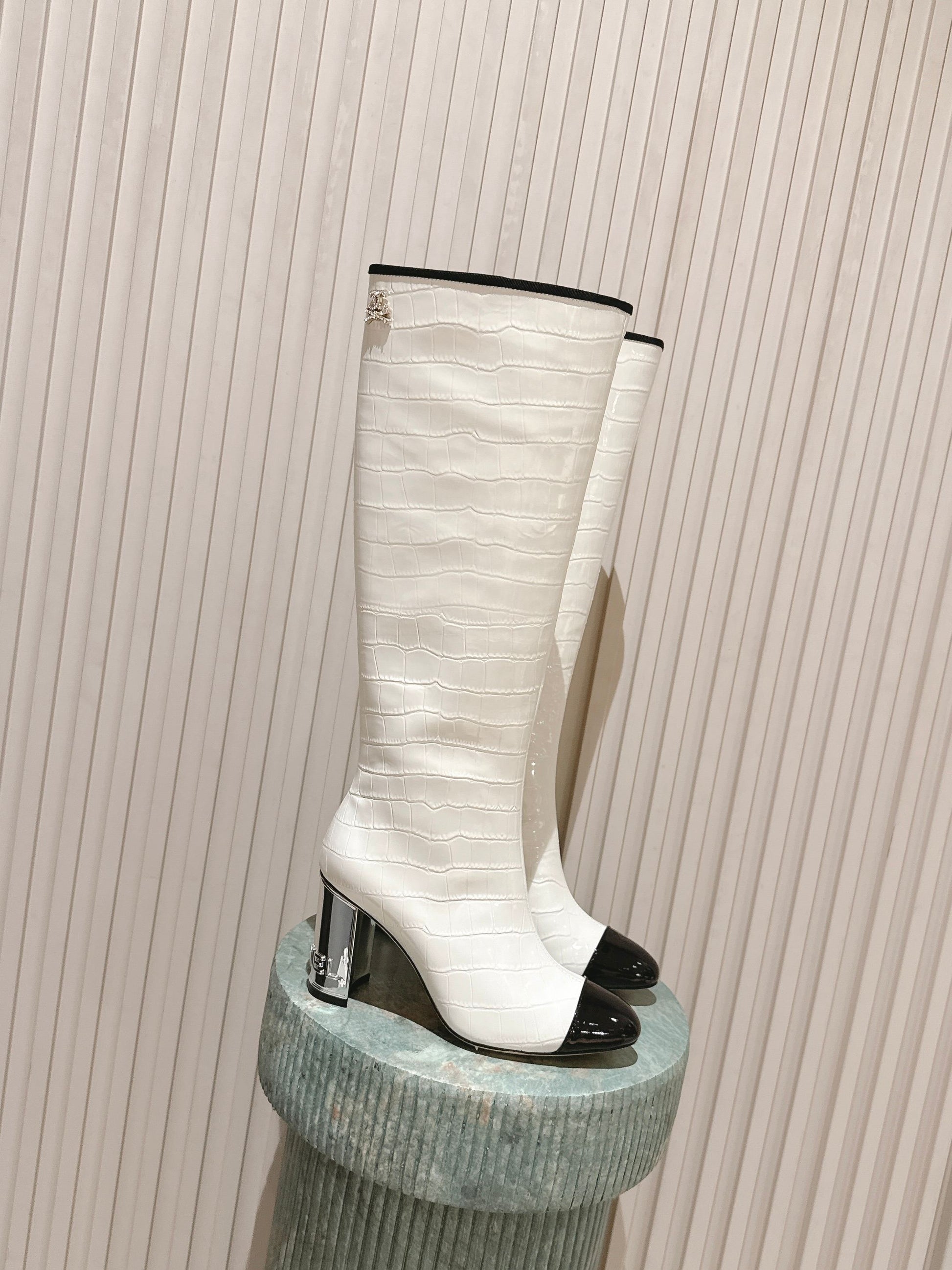 CC high-heeled boots white black patent calfskin 532834