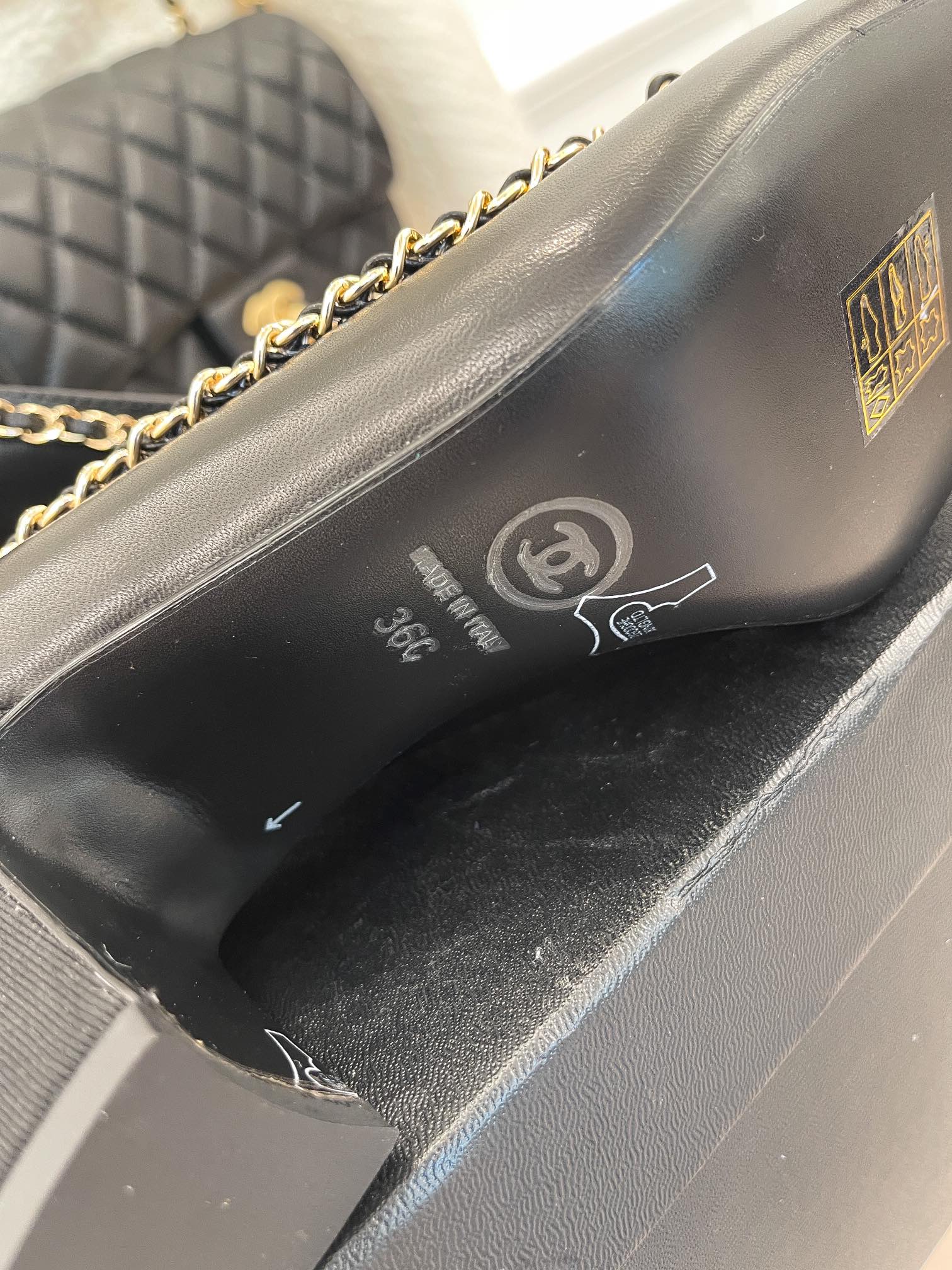 CC High Heels 65mm Black Bow Tie Chain Lambskin