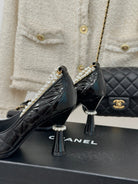 CC High Heels 80mm Black Bow Quilted Calfskin