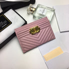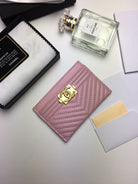 CC LINE CARD HOLDER 11.2 BABY PINK CALFSKIN GOLD ICON