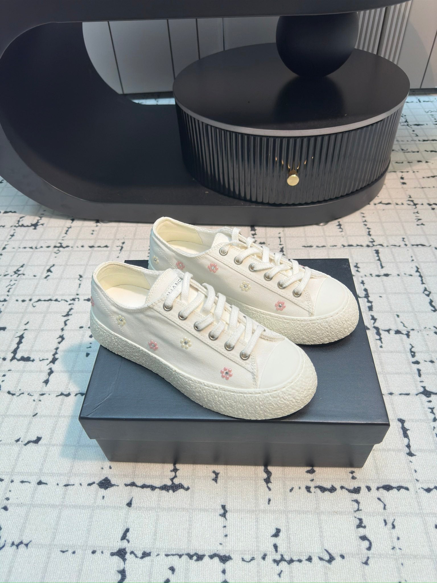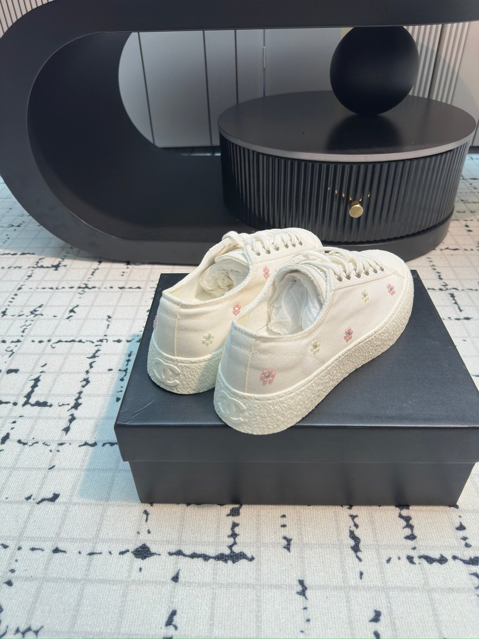 CC Low Sneaker 30mm White With Small Flowers Cavas Fabric