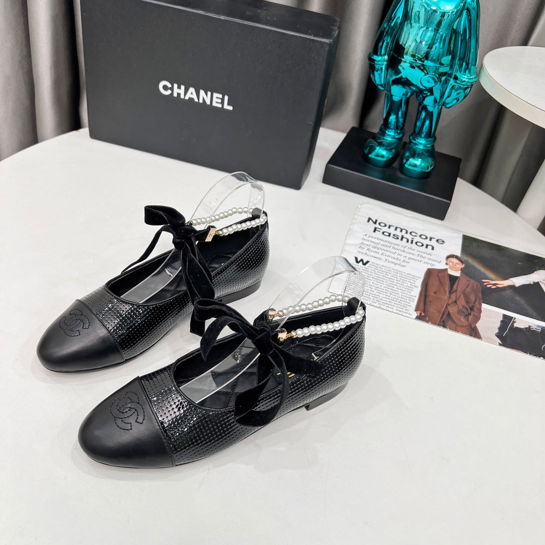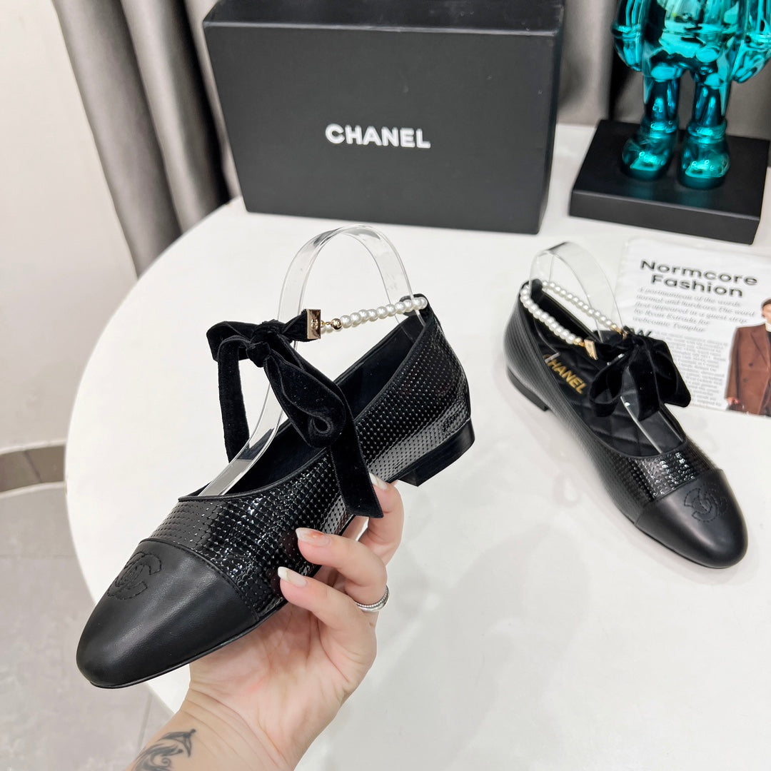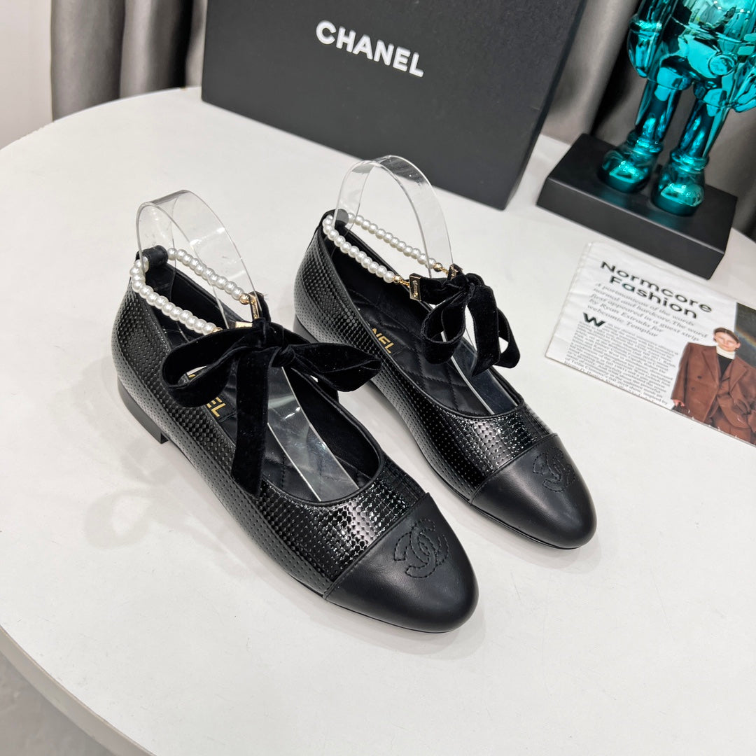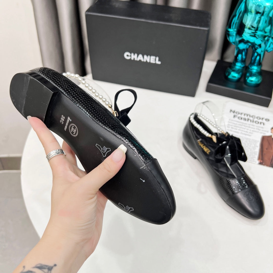 CC Mary Jane Black Studded With Pearls Lambskin And Cowhide