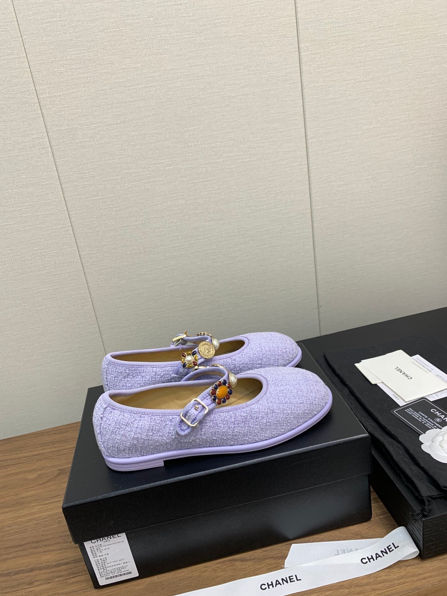 CC MARY JANES VIOLET WOOL TWEED AND FABRIC