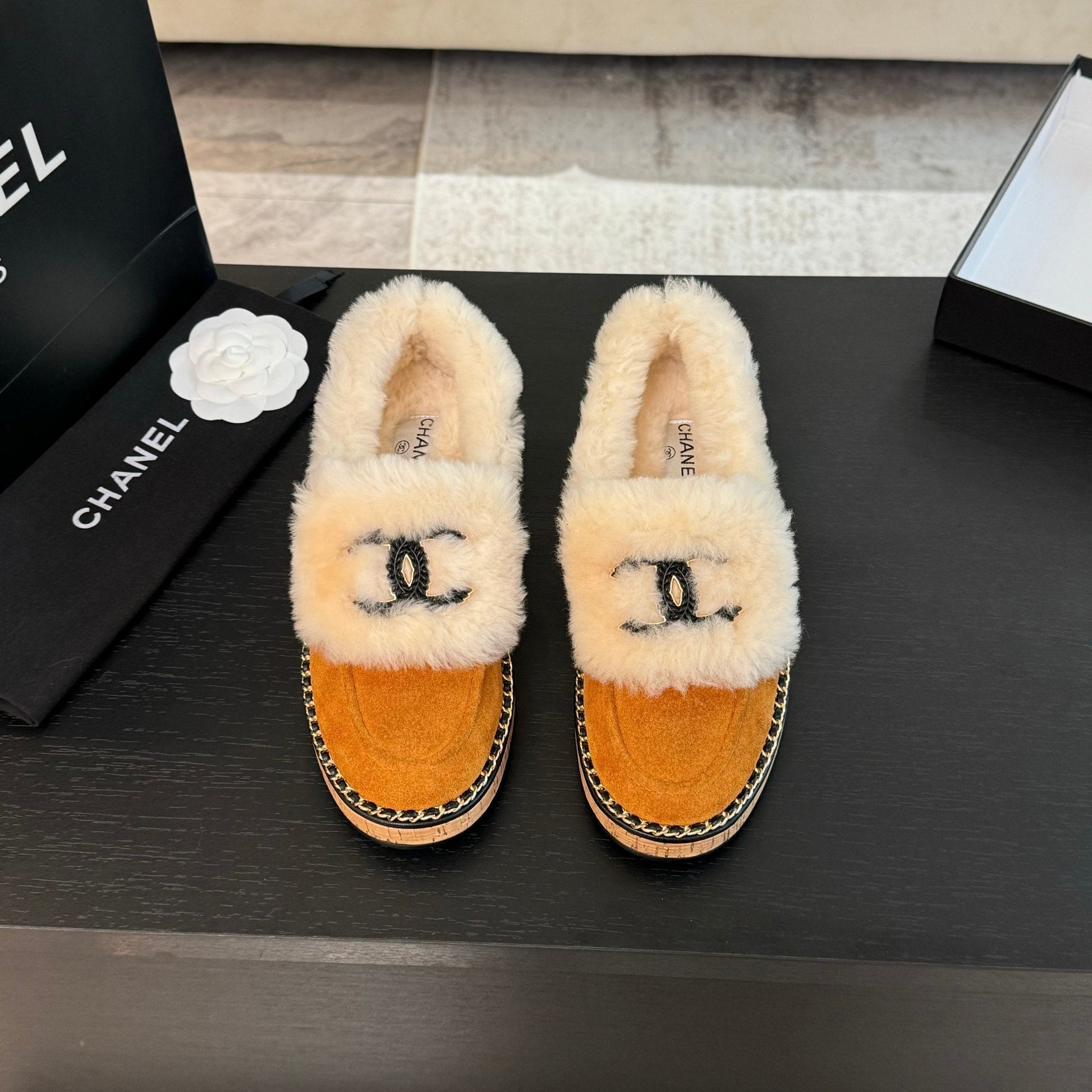 CC Moccasins Yellow Orange Suede And Fleece