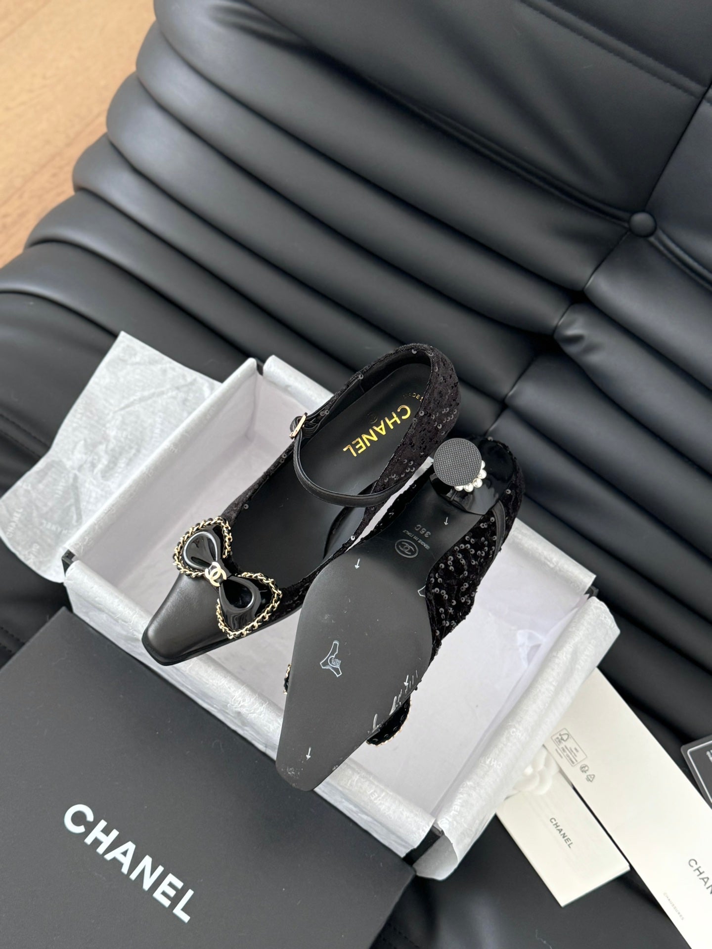 CC POINTED TOE HIGH HEELS IN BLACK VELVET AND LAMBSKIN GOLD HARDWARE