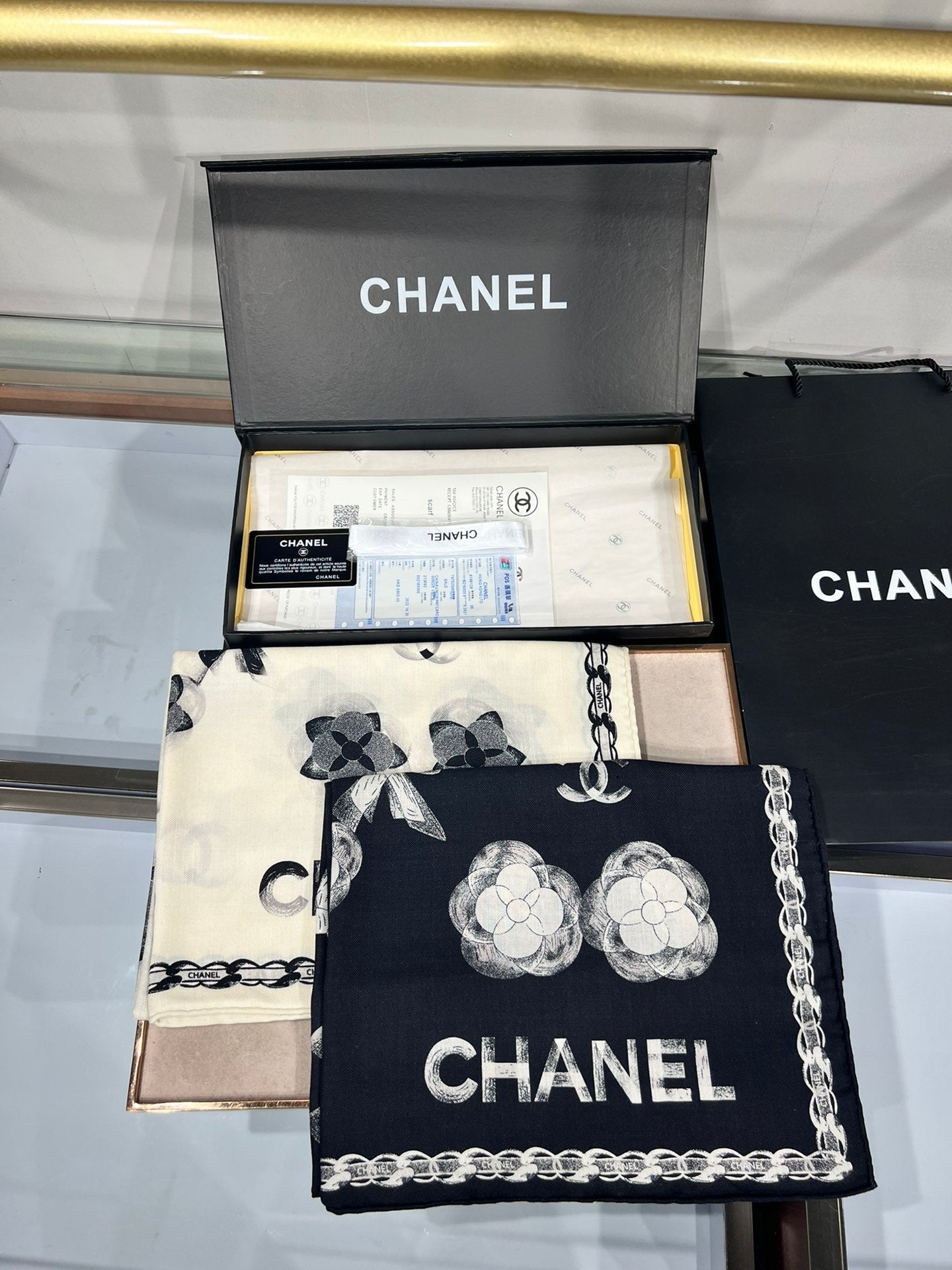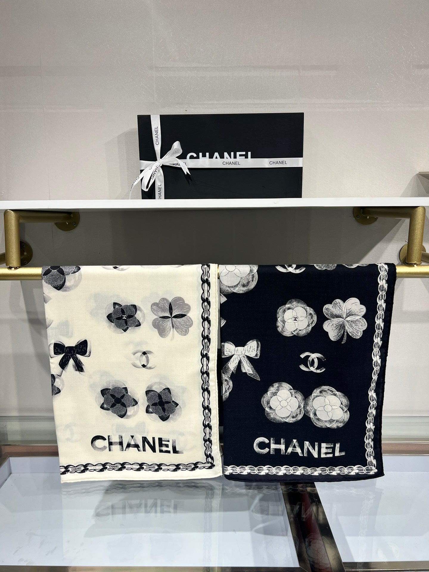 CC Scarf 185 CM In White Black Cashmere Silk 413589