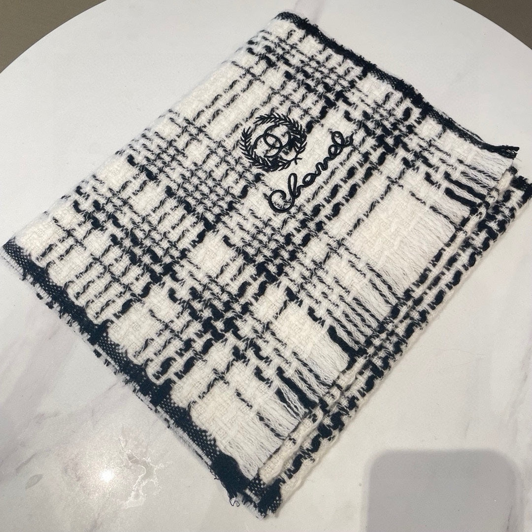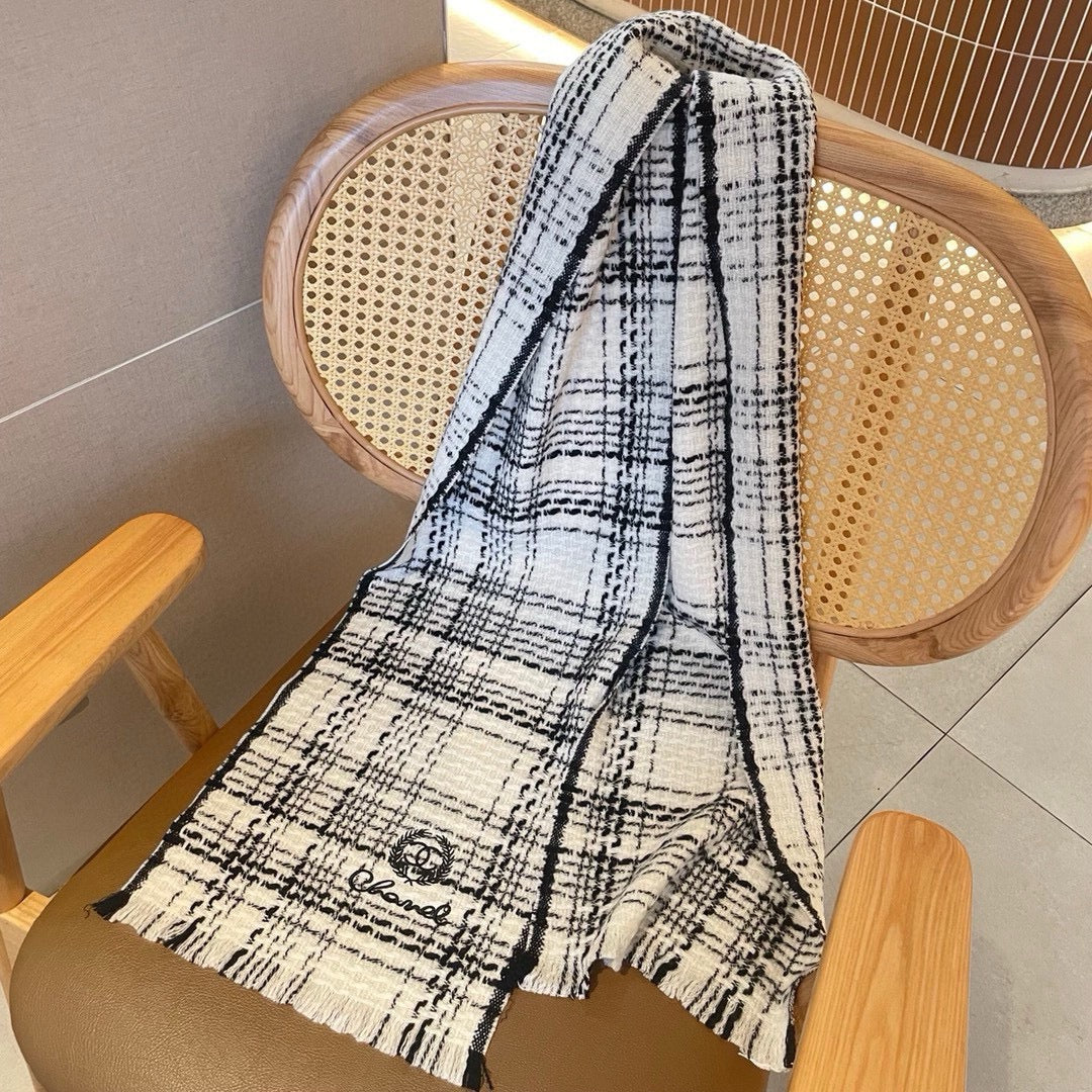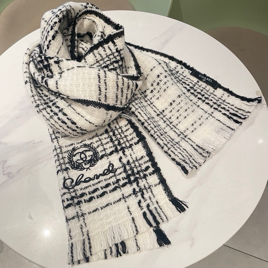 CC Scarf 186 CM In White With Black Stripes Fleece Wool 418245