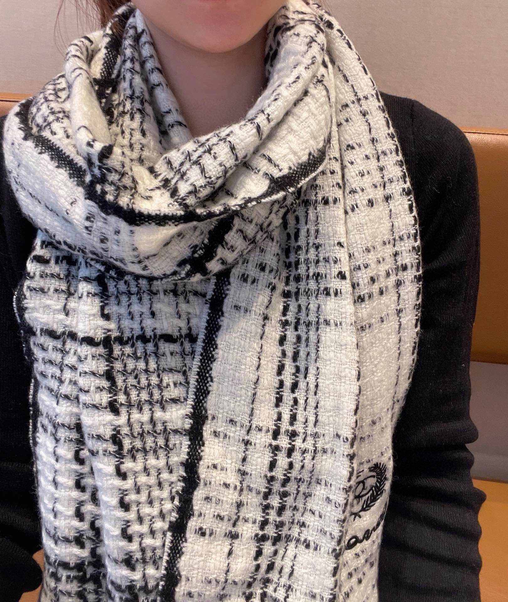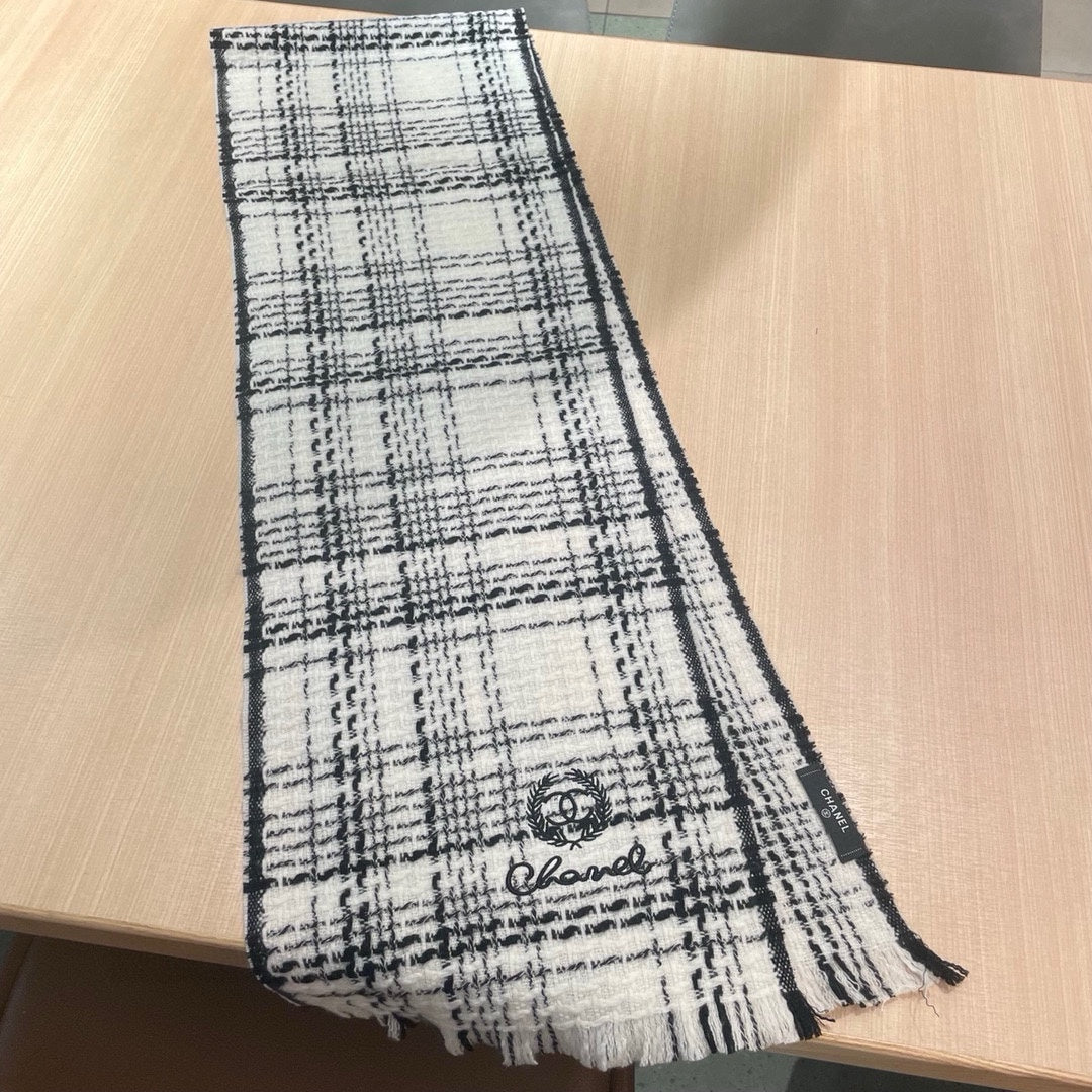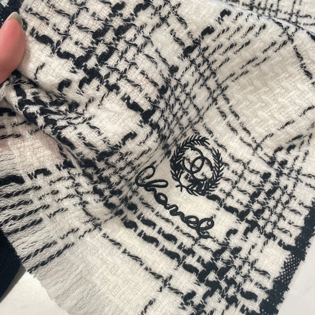CC Scarf 186 CM In White With Black Stripes Fleece Wool 418245