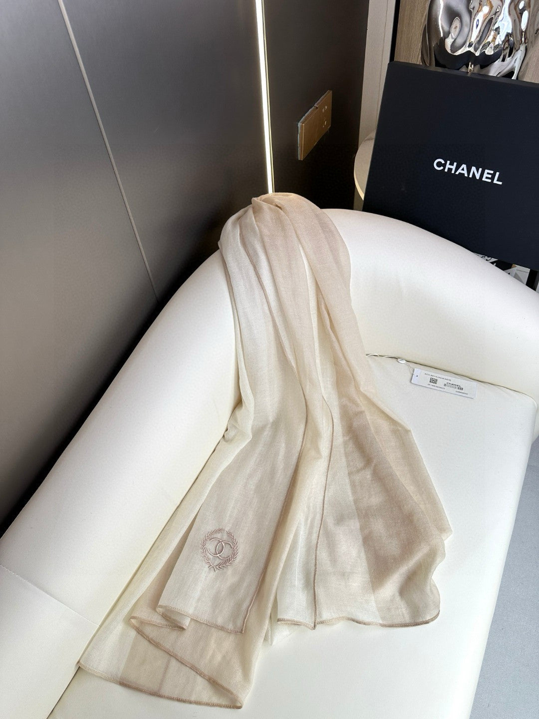 CC Scarf 200 CM In Light Beige Mix Dark Beige Cashmere Silk 396446