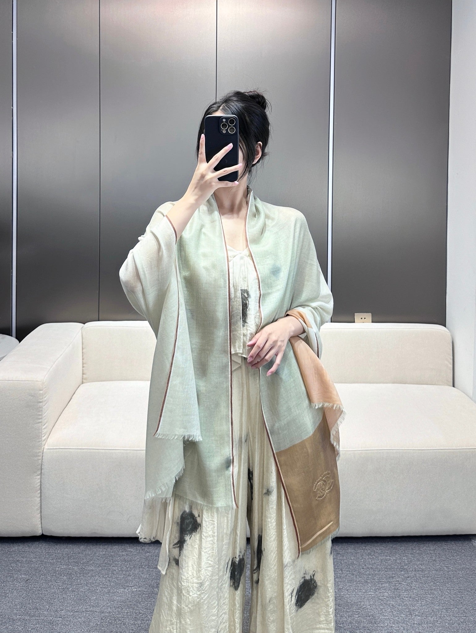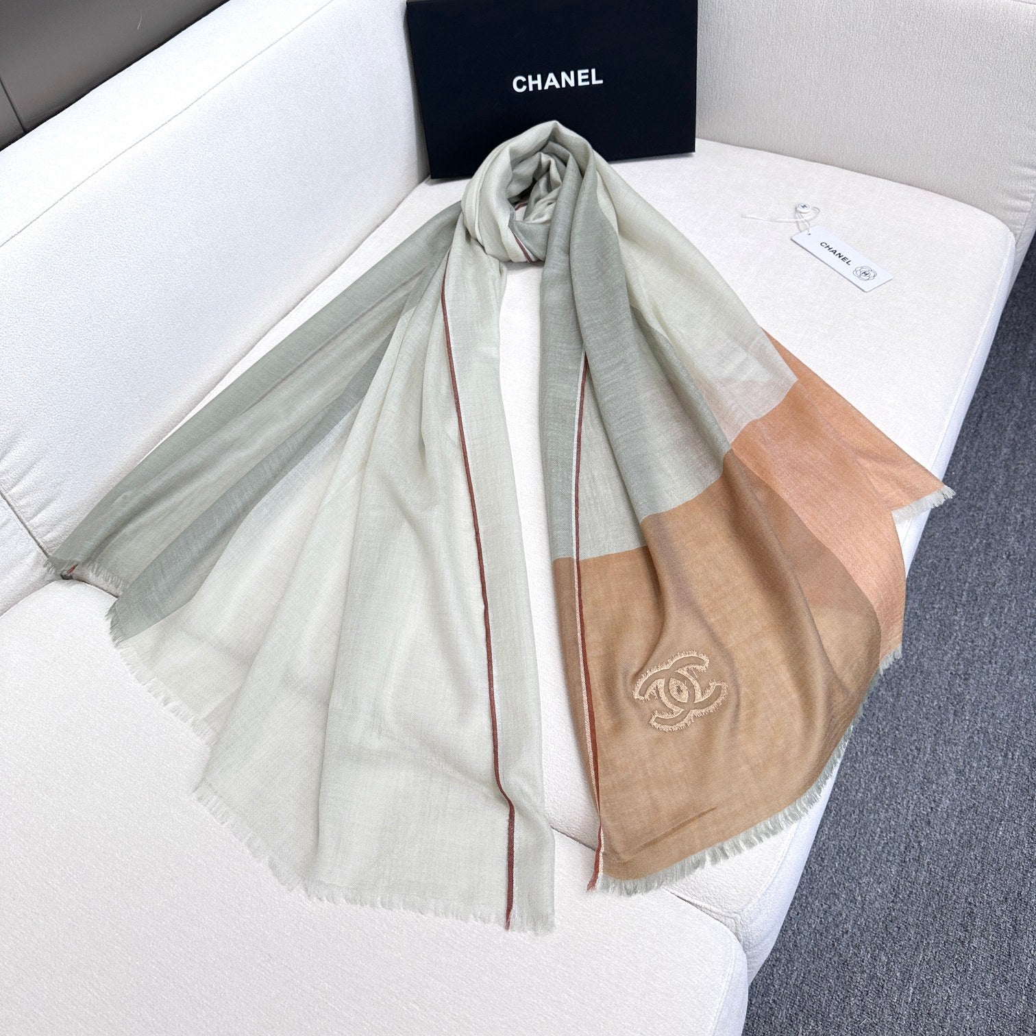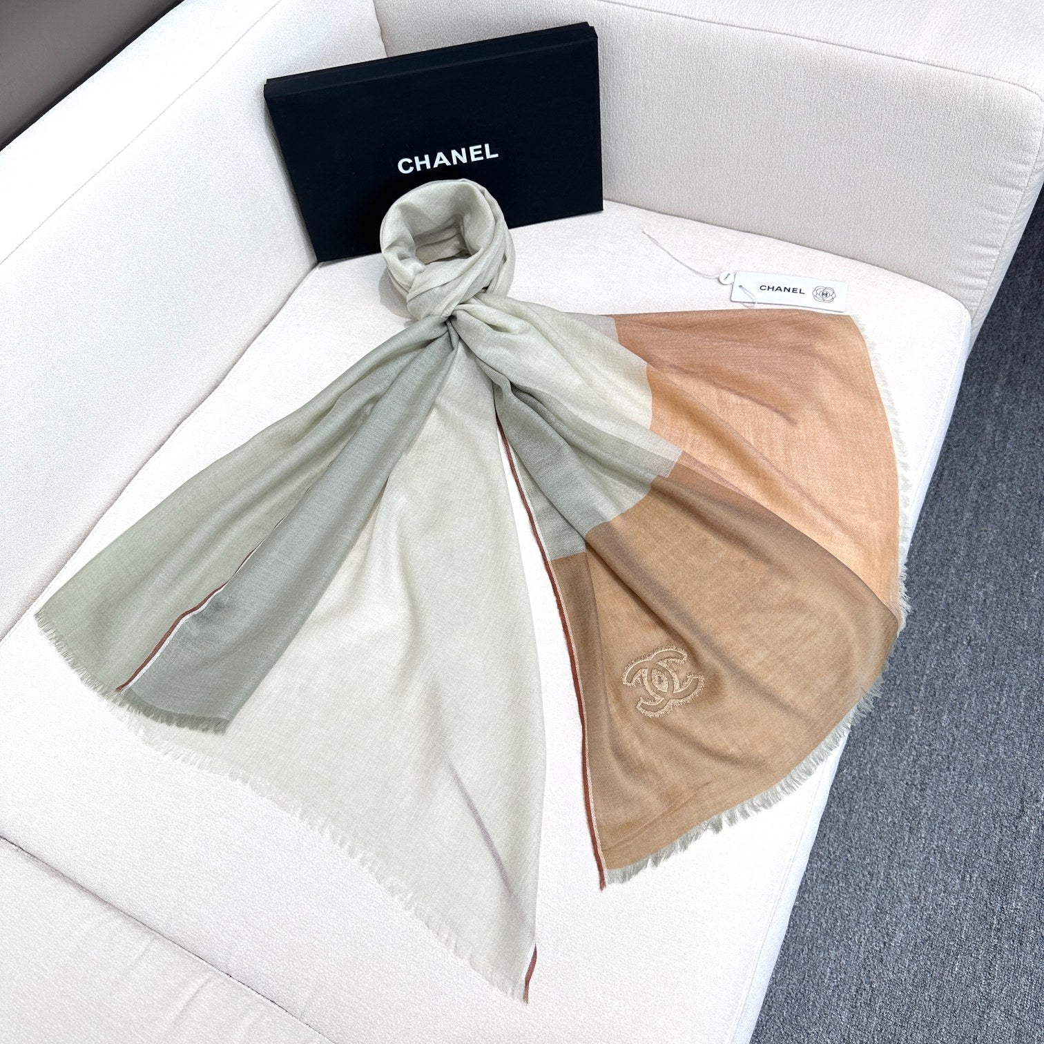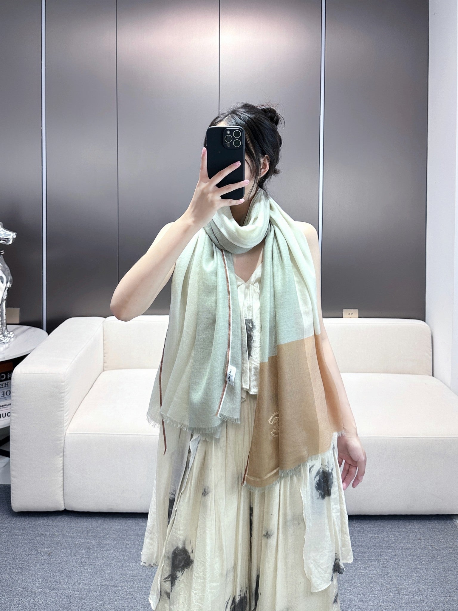 CC Scarf 200 CM In Light Grey Mix Light Brown Beige Linen Fabric 418195