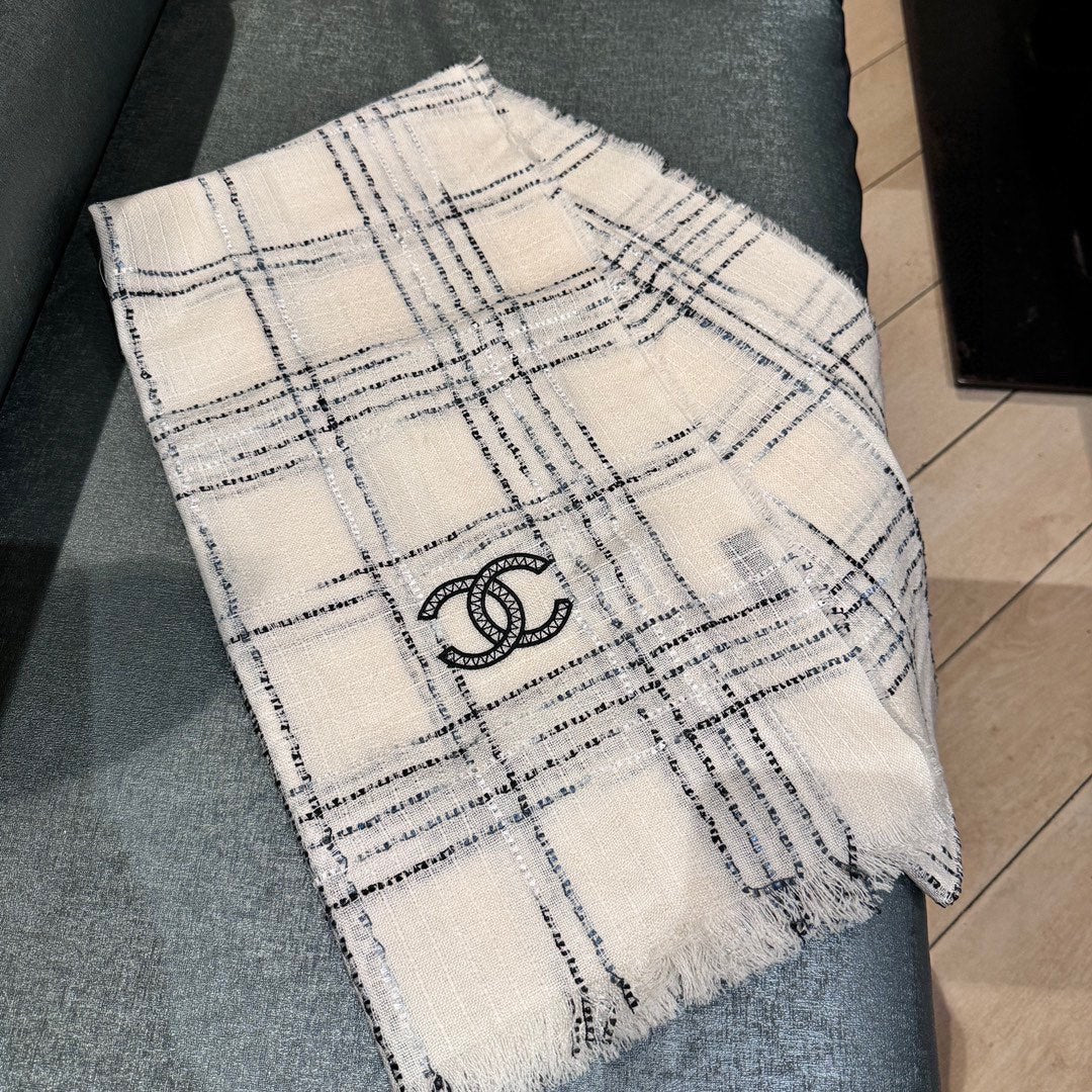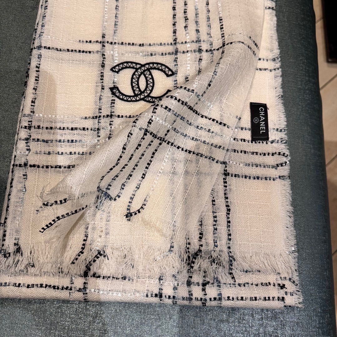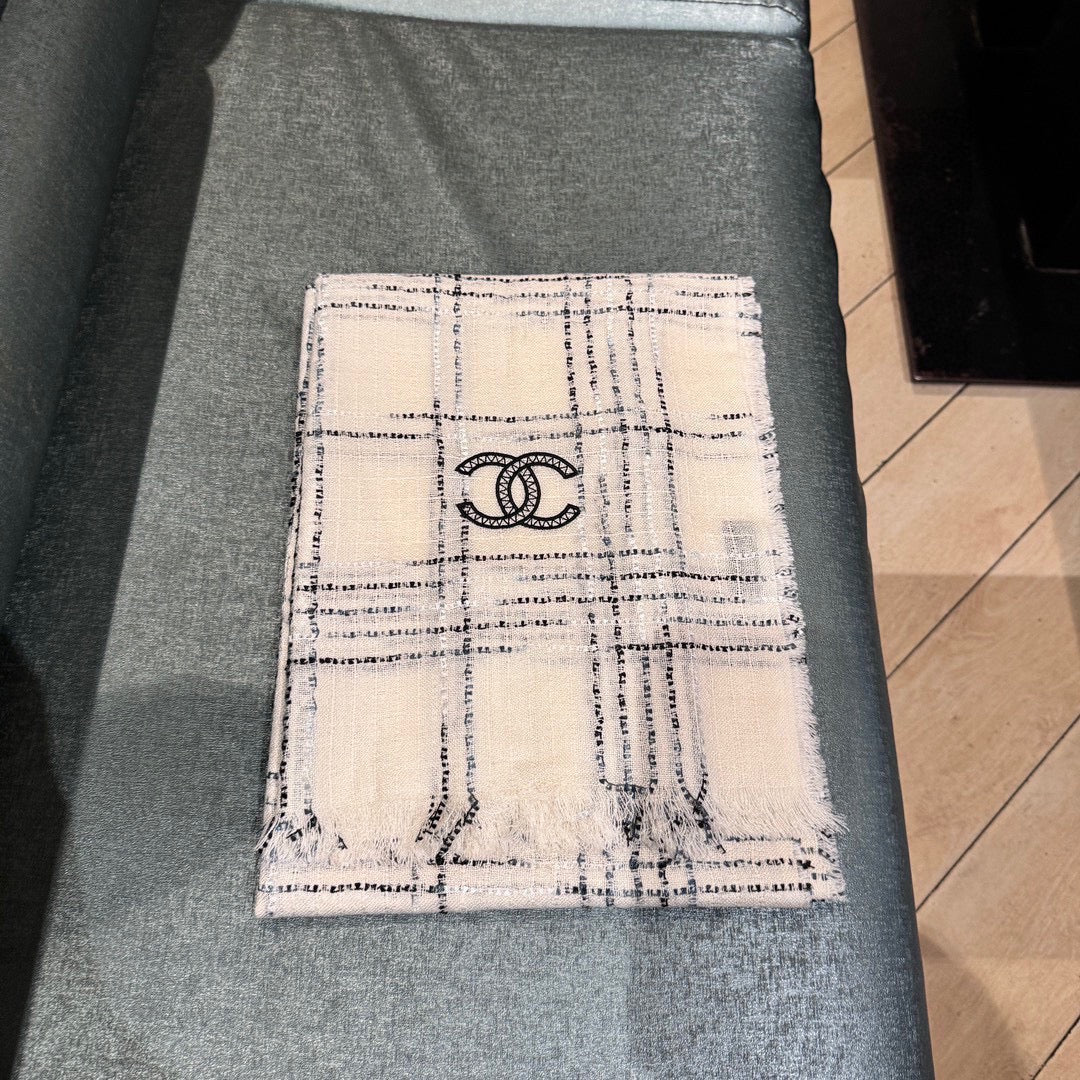 CC Scarf 200 CM In White With Black Stripes Cashmere 413882
