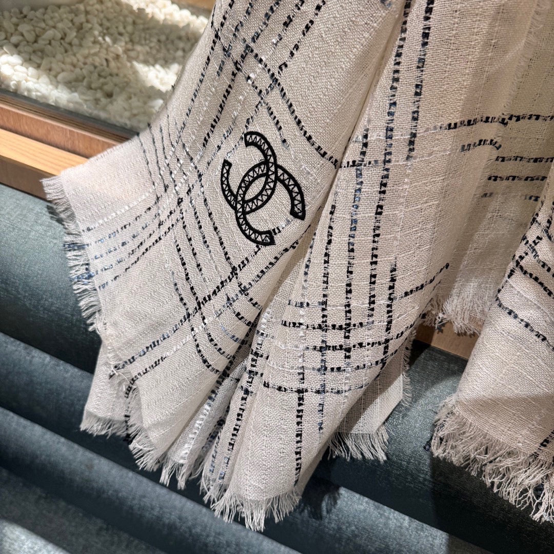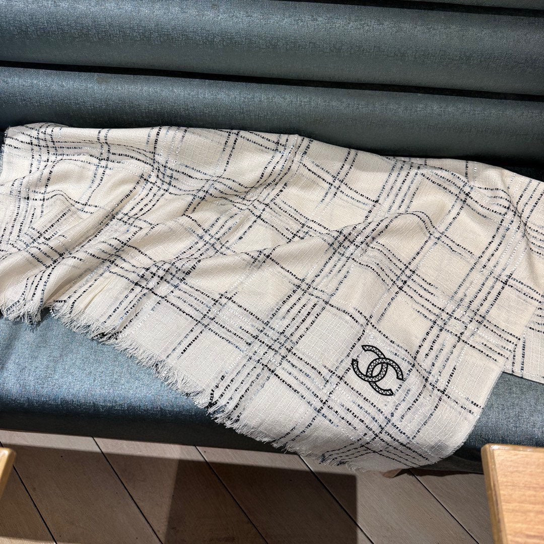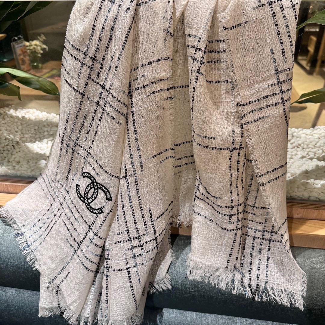 CC Scarf 200 CM In White With Black Stripes Cashmere 413882