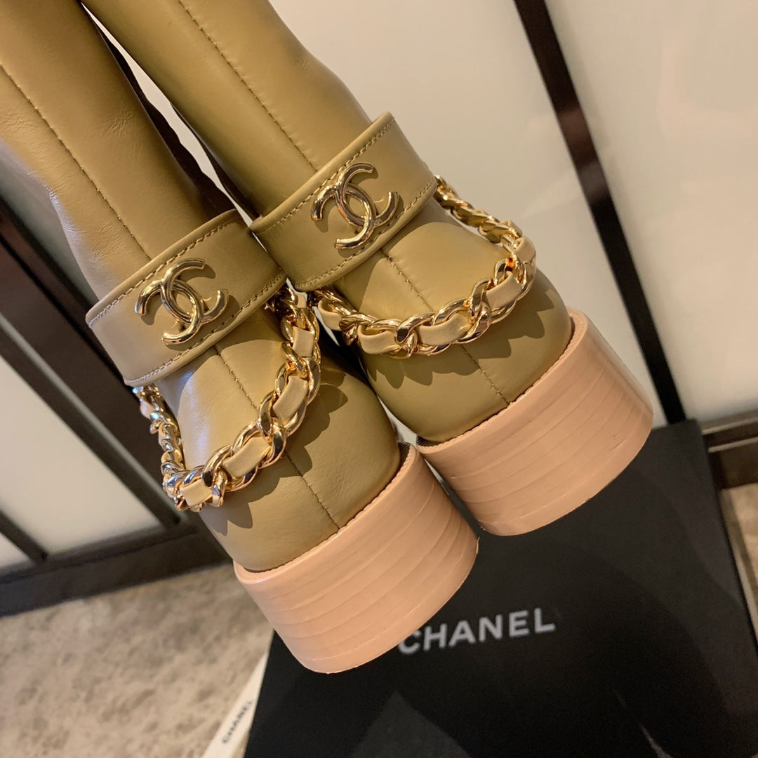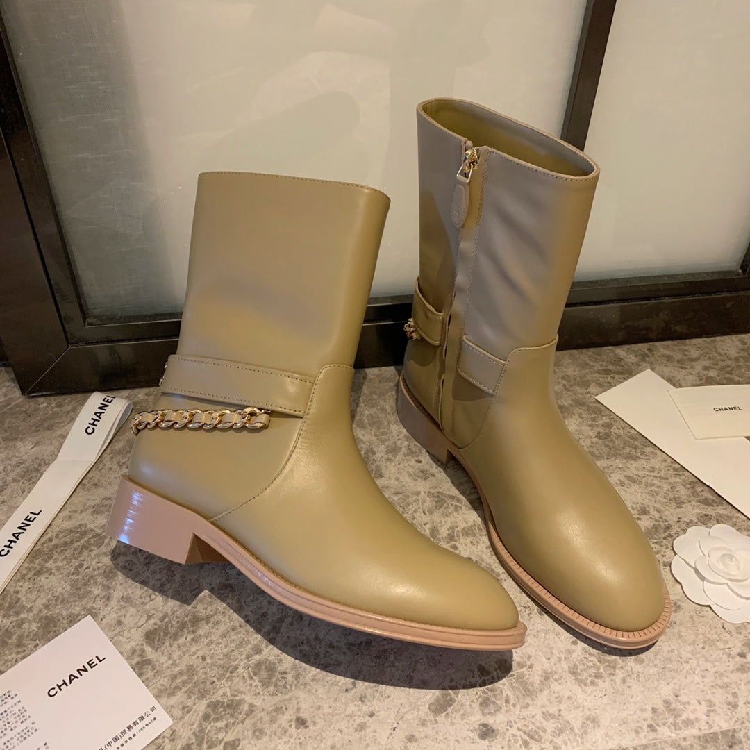 CC Short Boots 35mm In Beige With Chain Cowhide 940088