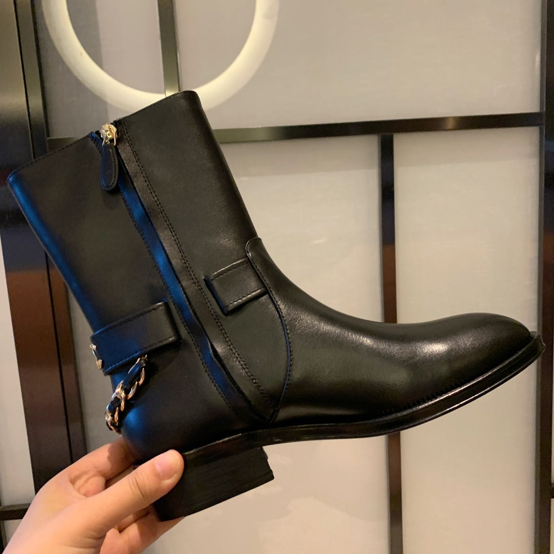CC Short Boots 35mm In Black With Chain Cowhide 940089