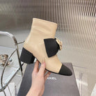 CC Short Boots 60mm Beige Camellia Cowhide