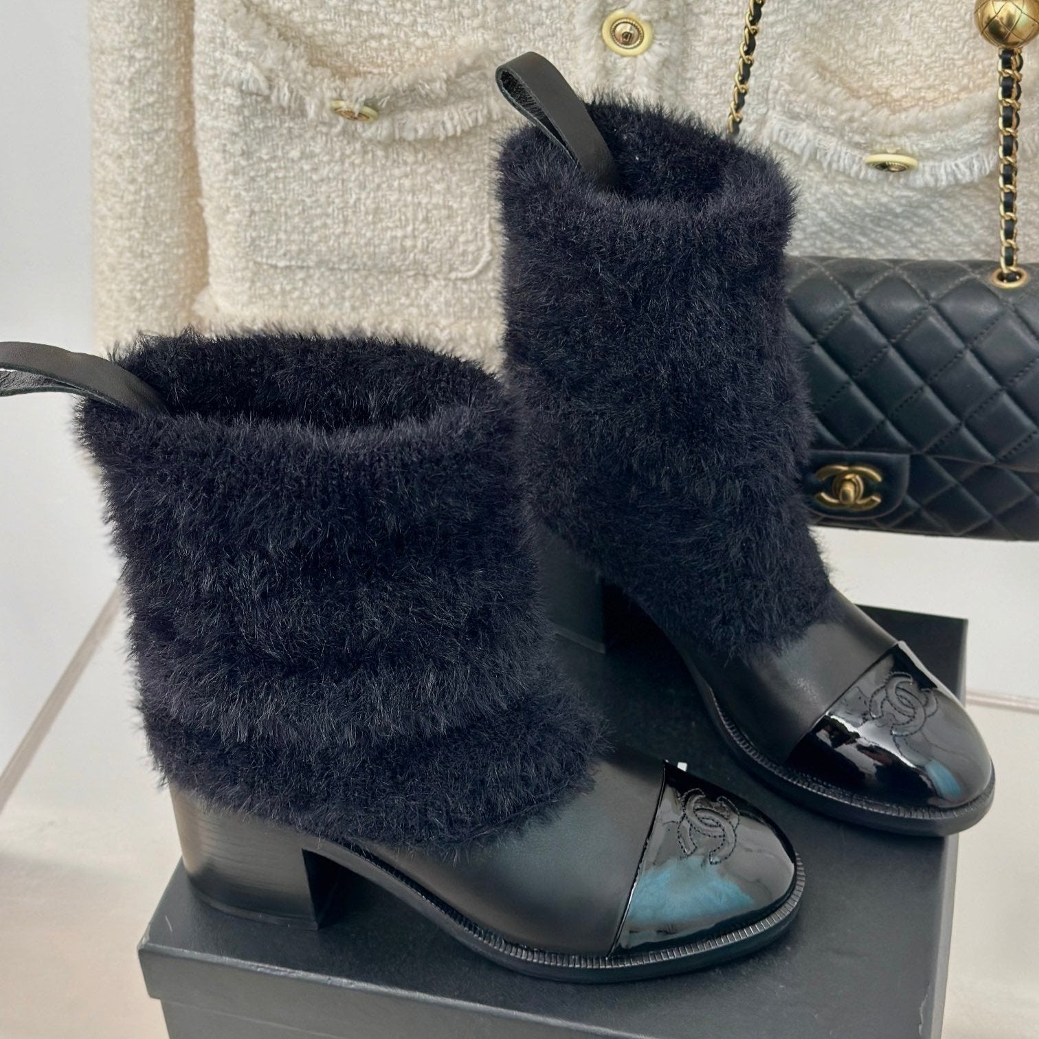 CC Short Boots 60mm Black Cowhide And Wool Yarn