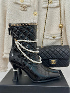 CC Short Boots 80mm Glossy Black Wrinkled Quilted Calfskin