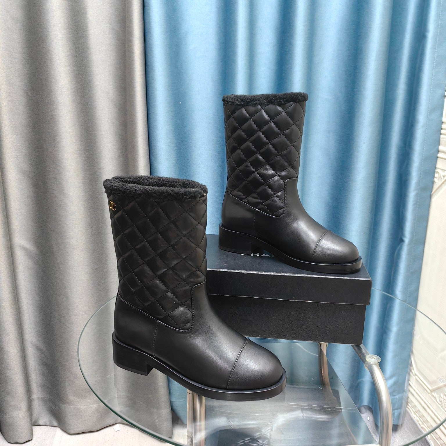 CC Short Boots Black Calfskin Lining Wool And Lambskin