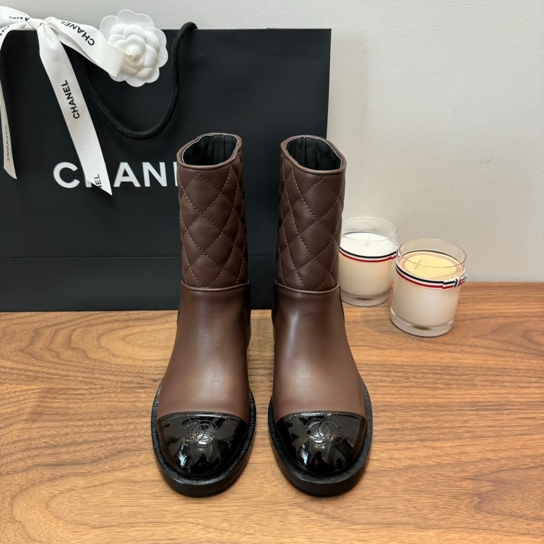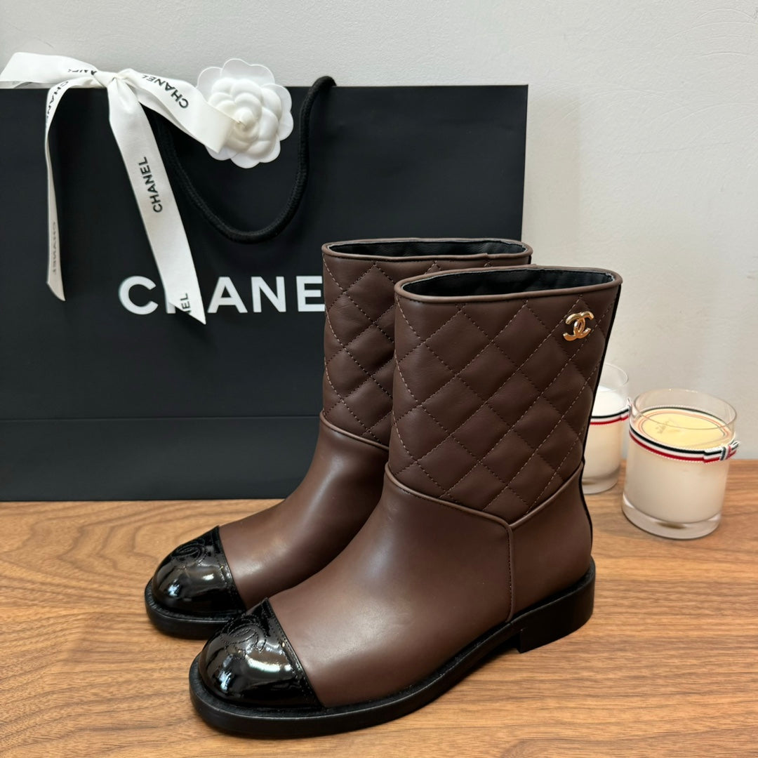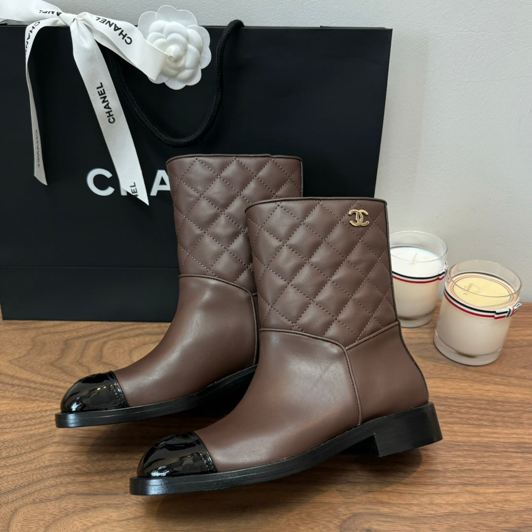CC Short Boots Earth Brown Quilted Calfskin
