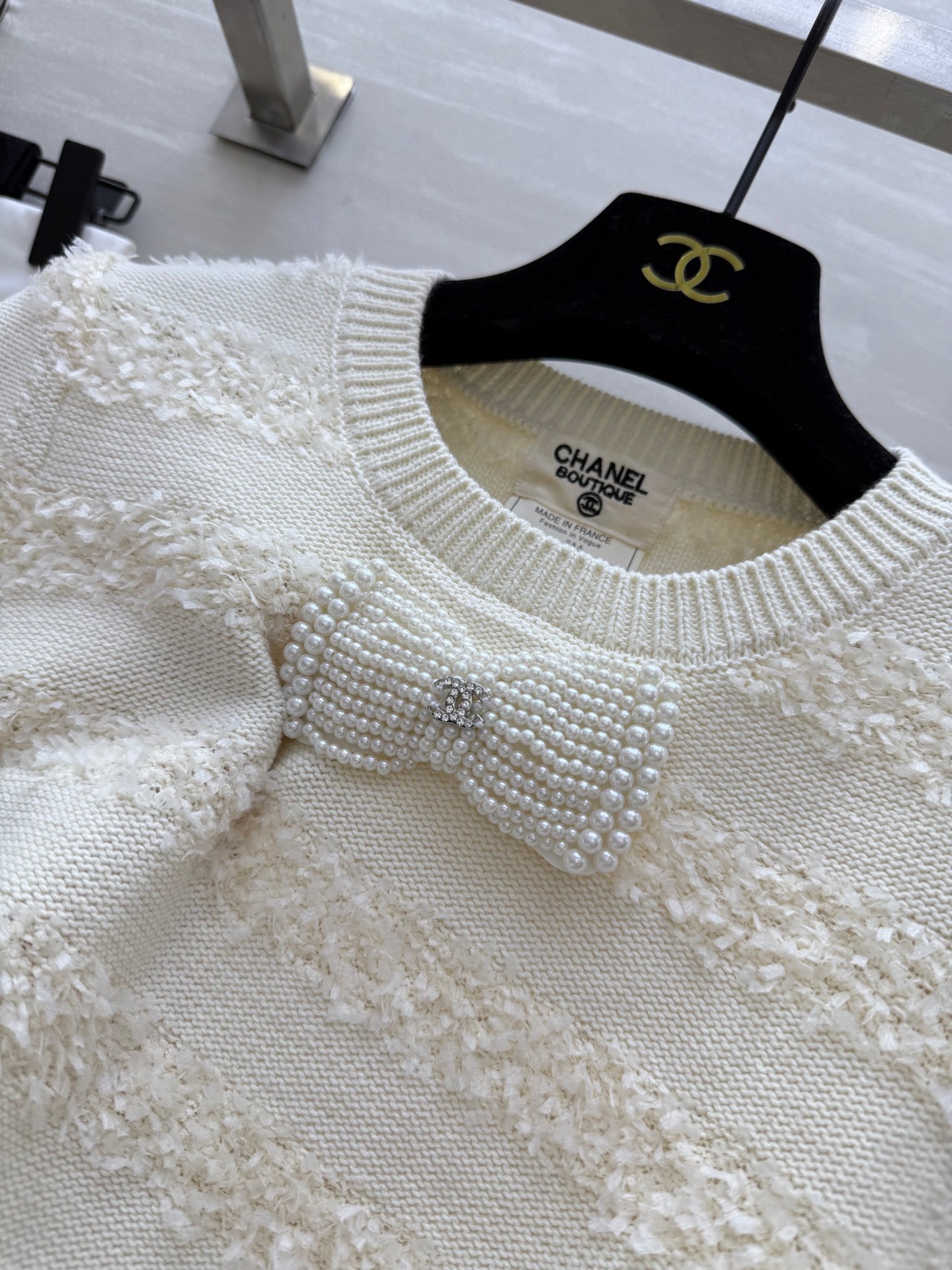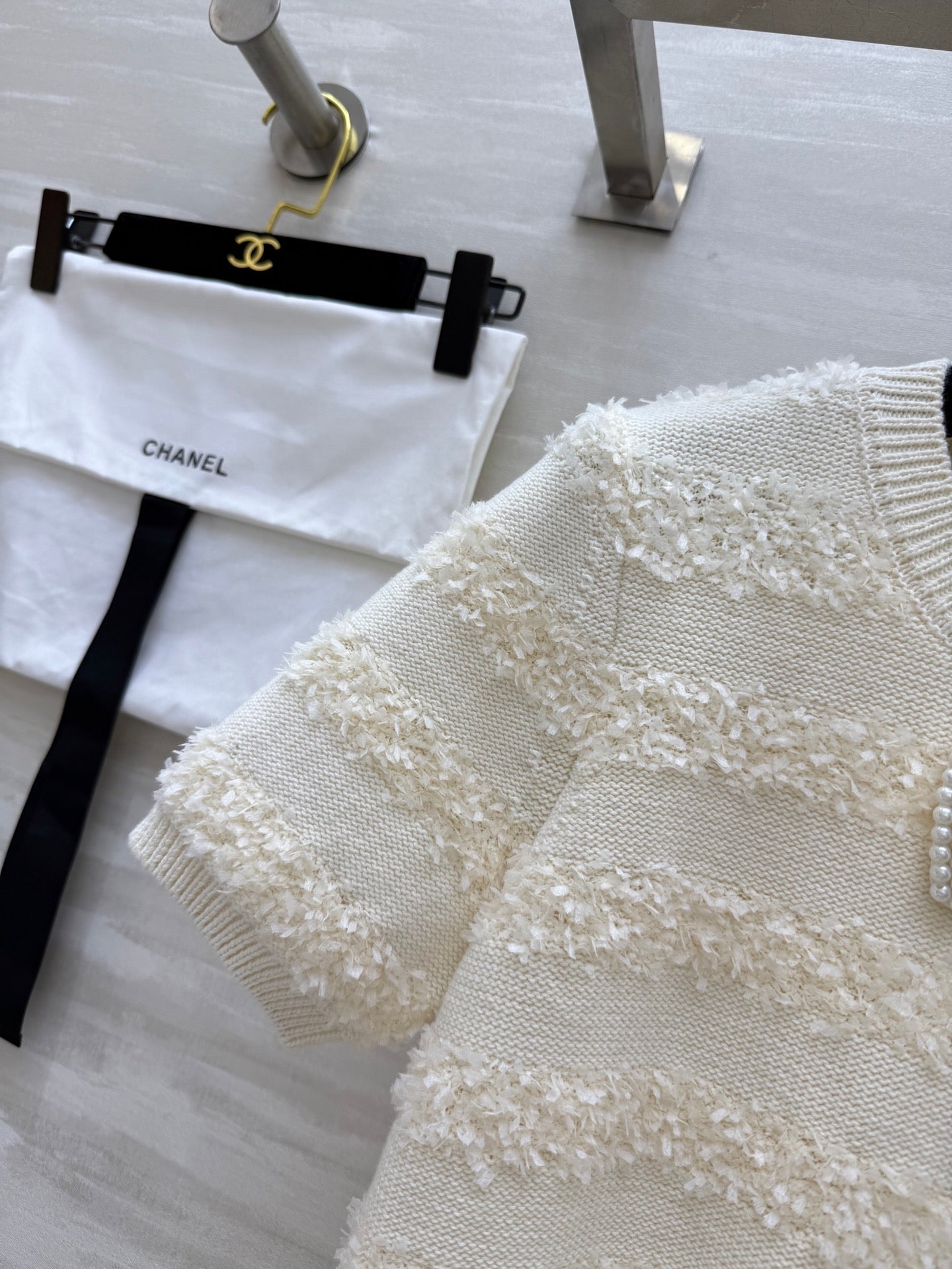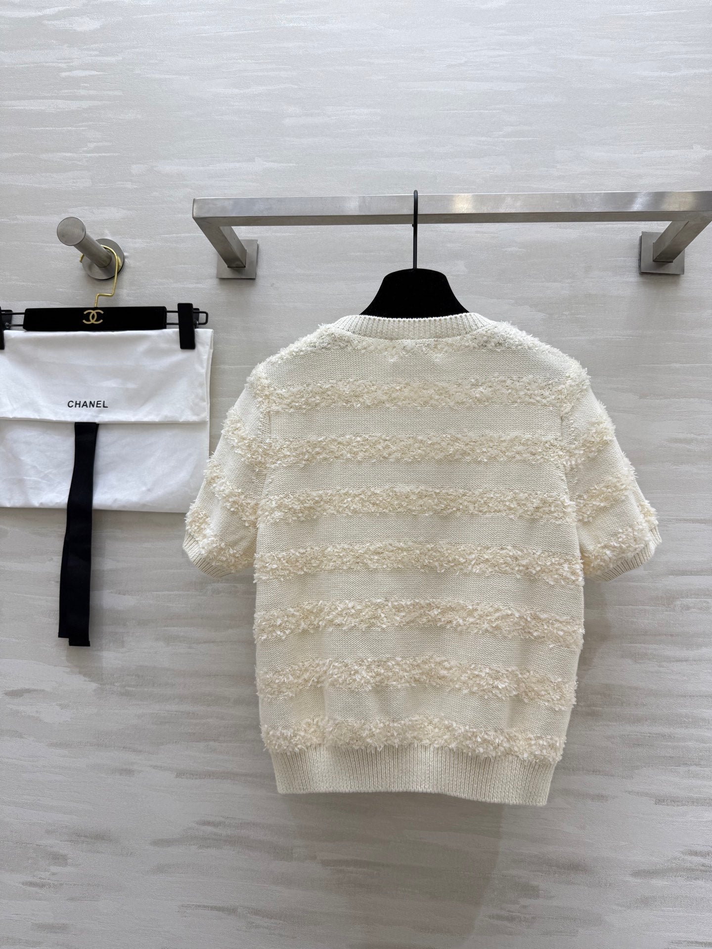 CC Short Sleeve Knitted T-shirt Ivory Imported Fabric