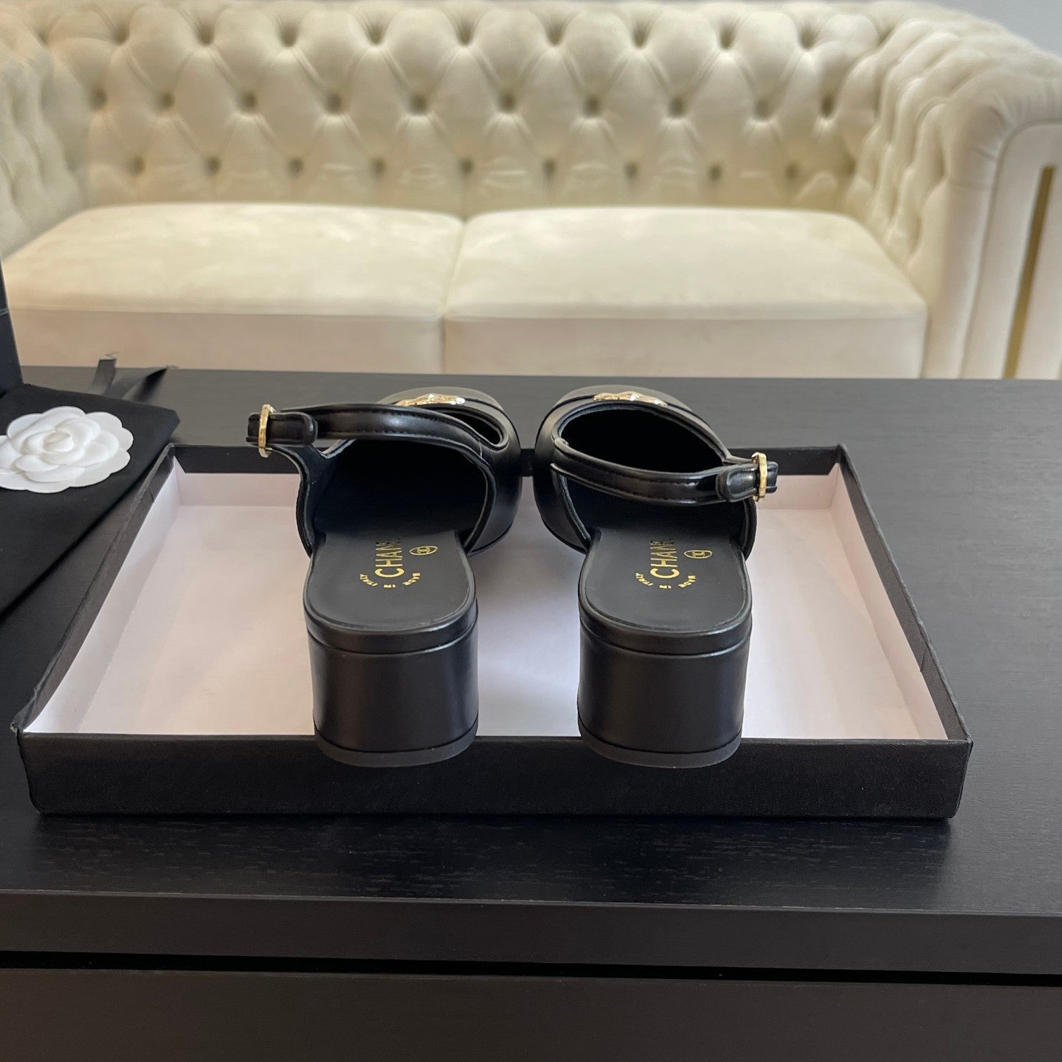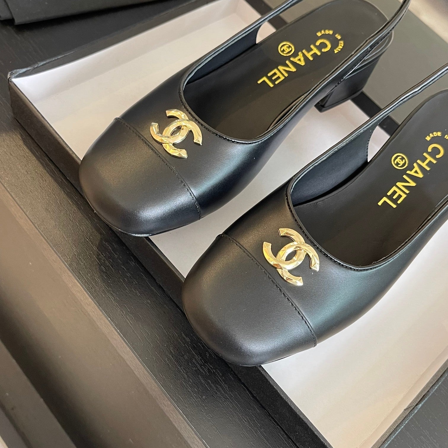 cc slingback 50 all black calfskin