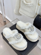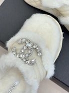 CC slipper double C rhinestone buckle white wool 512052