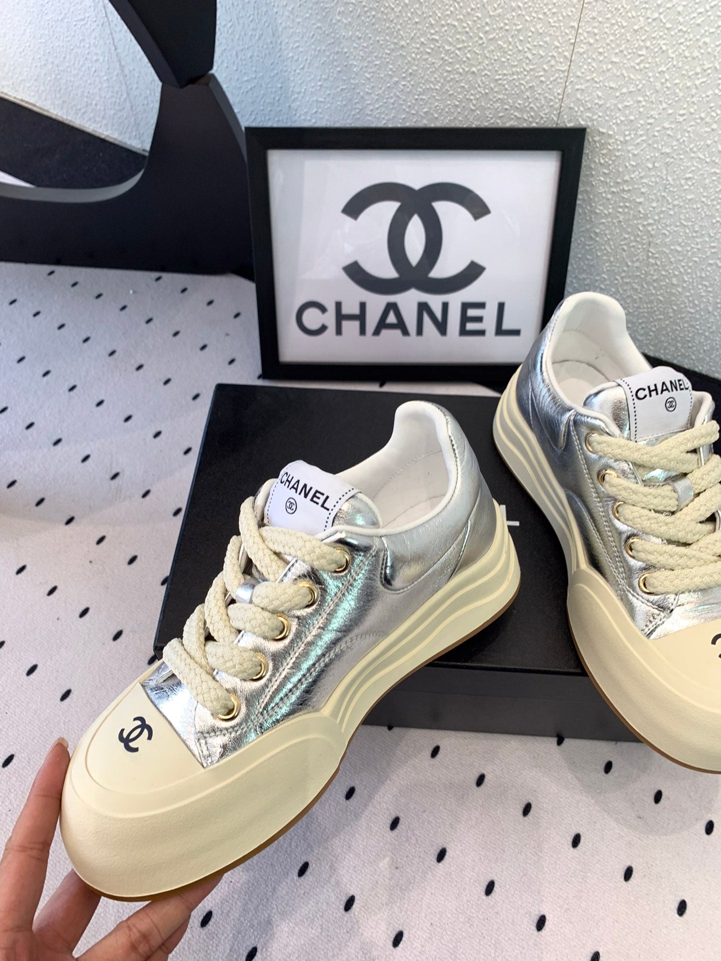 CC Sneaker 50mm In Silver Cowhide 147068