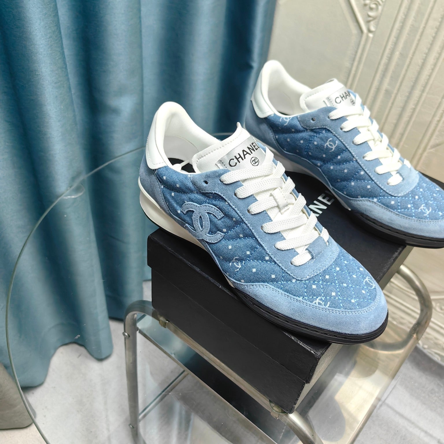 CC Sneaker Blue Quilted Denim Fabric And Suede