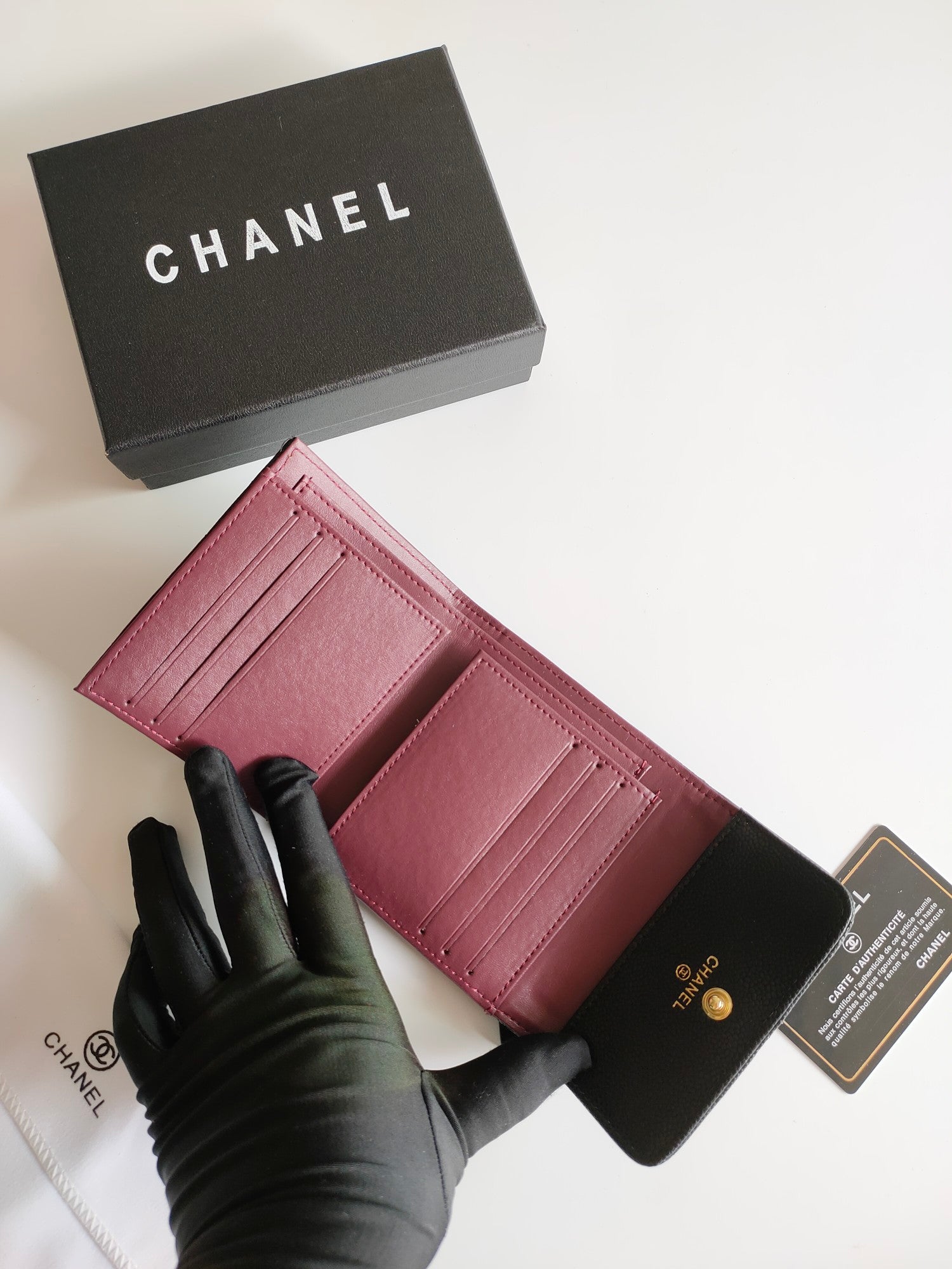CC SQUARE PURSE 12 BLACK GRAINED CALFSKIN GOLD ICON