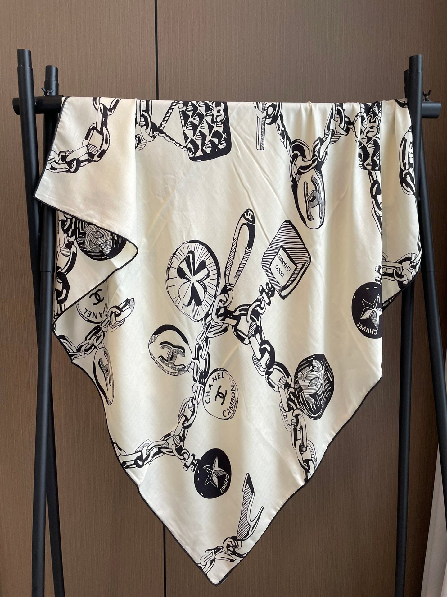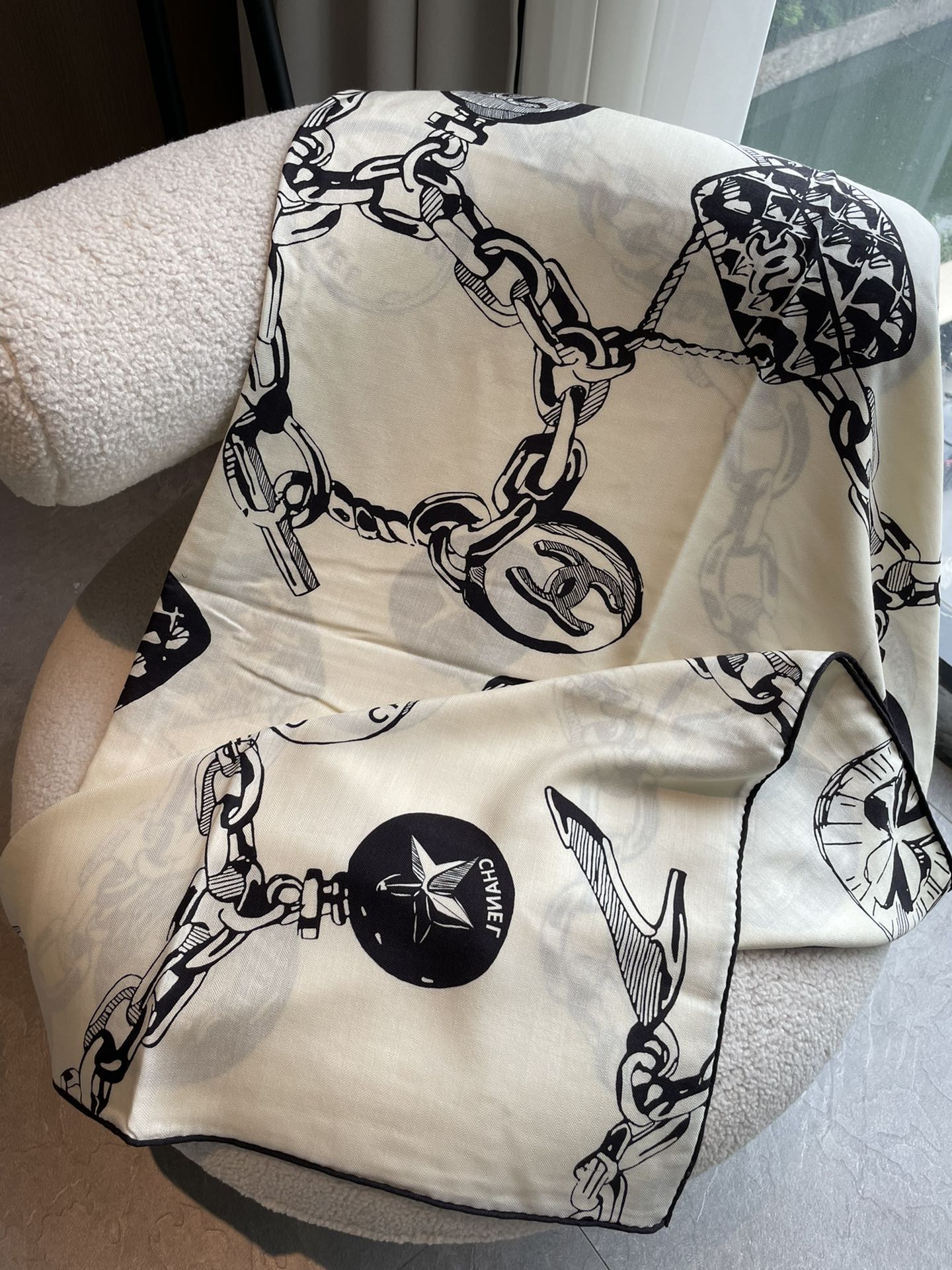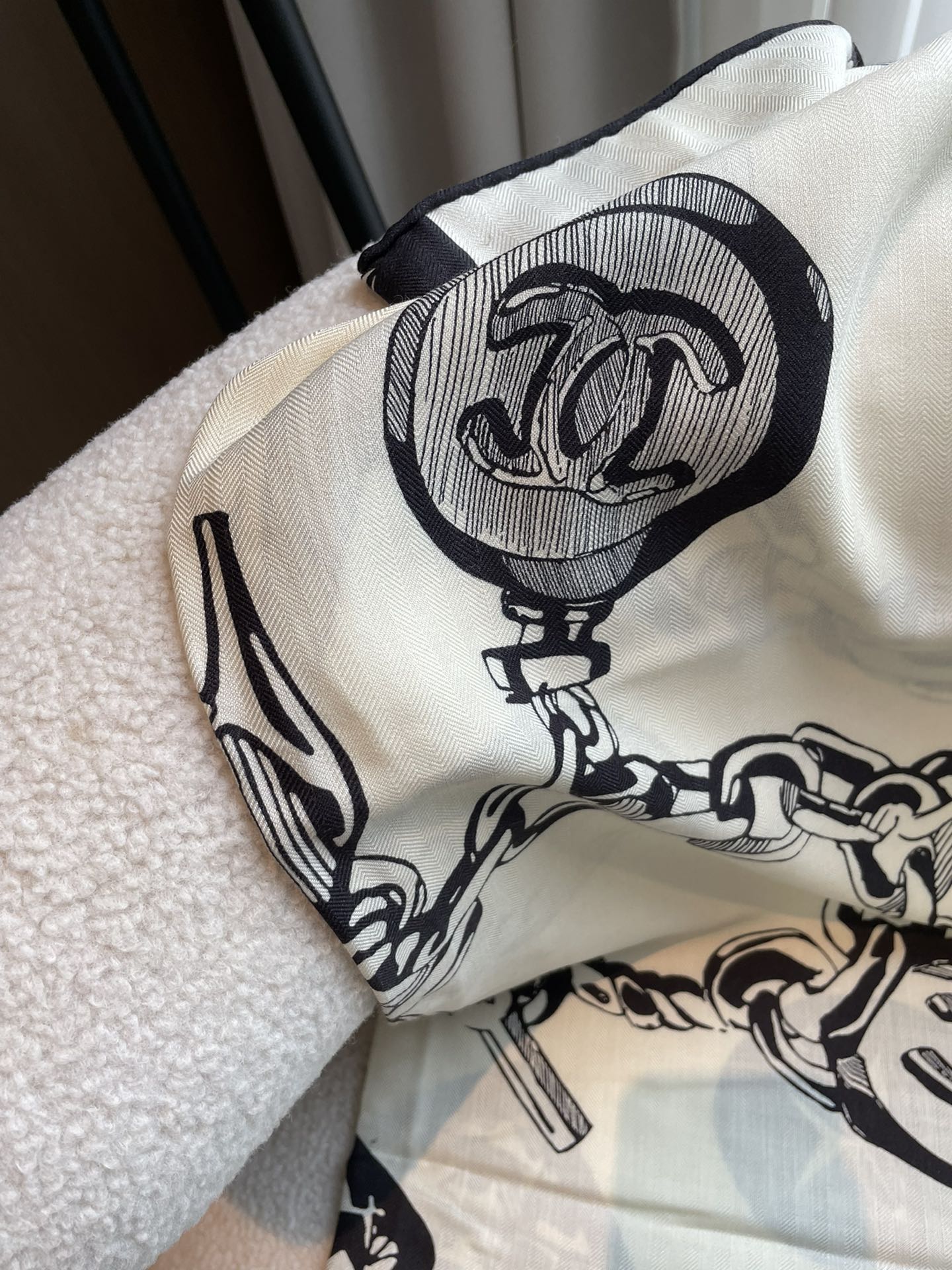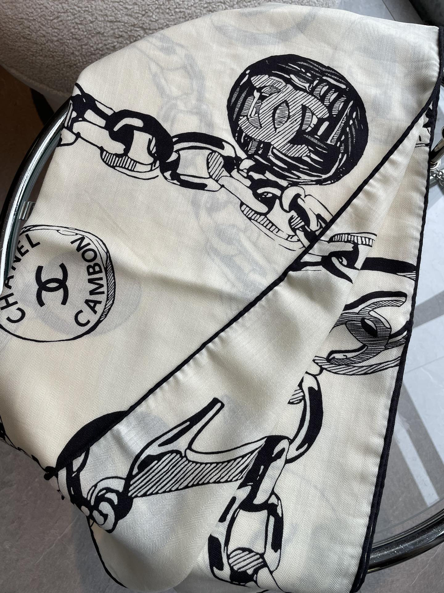 CC Square Scarf 140 CM In White Black Silk 421550