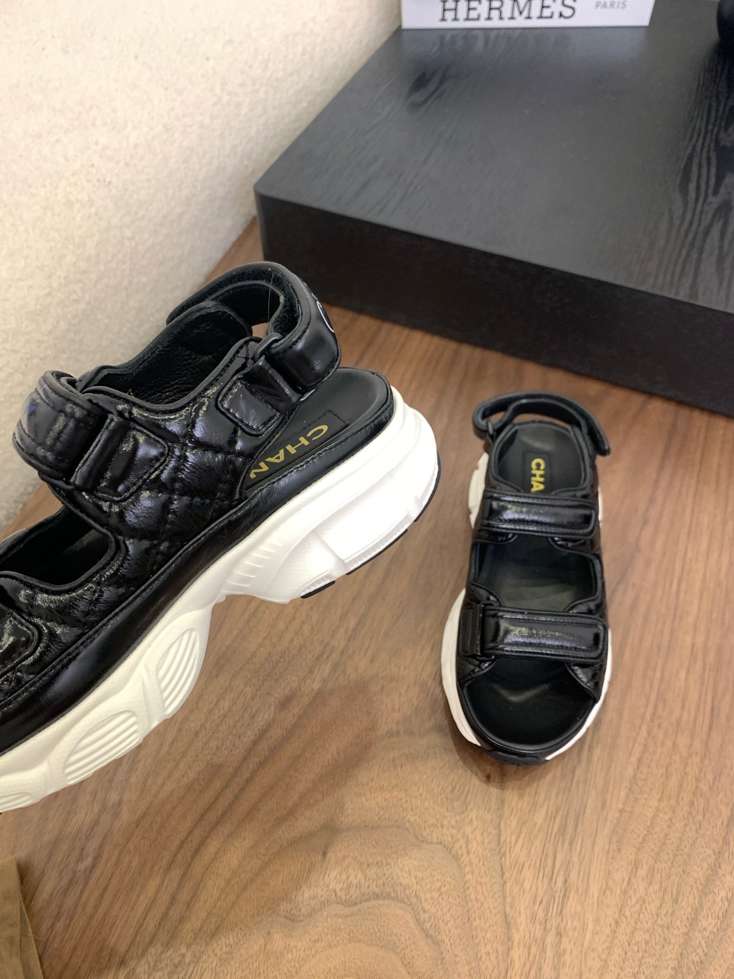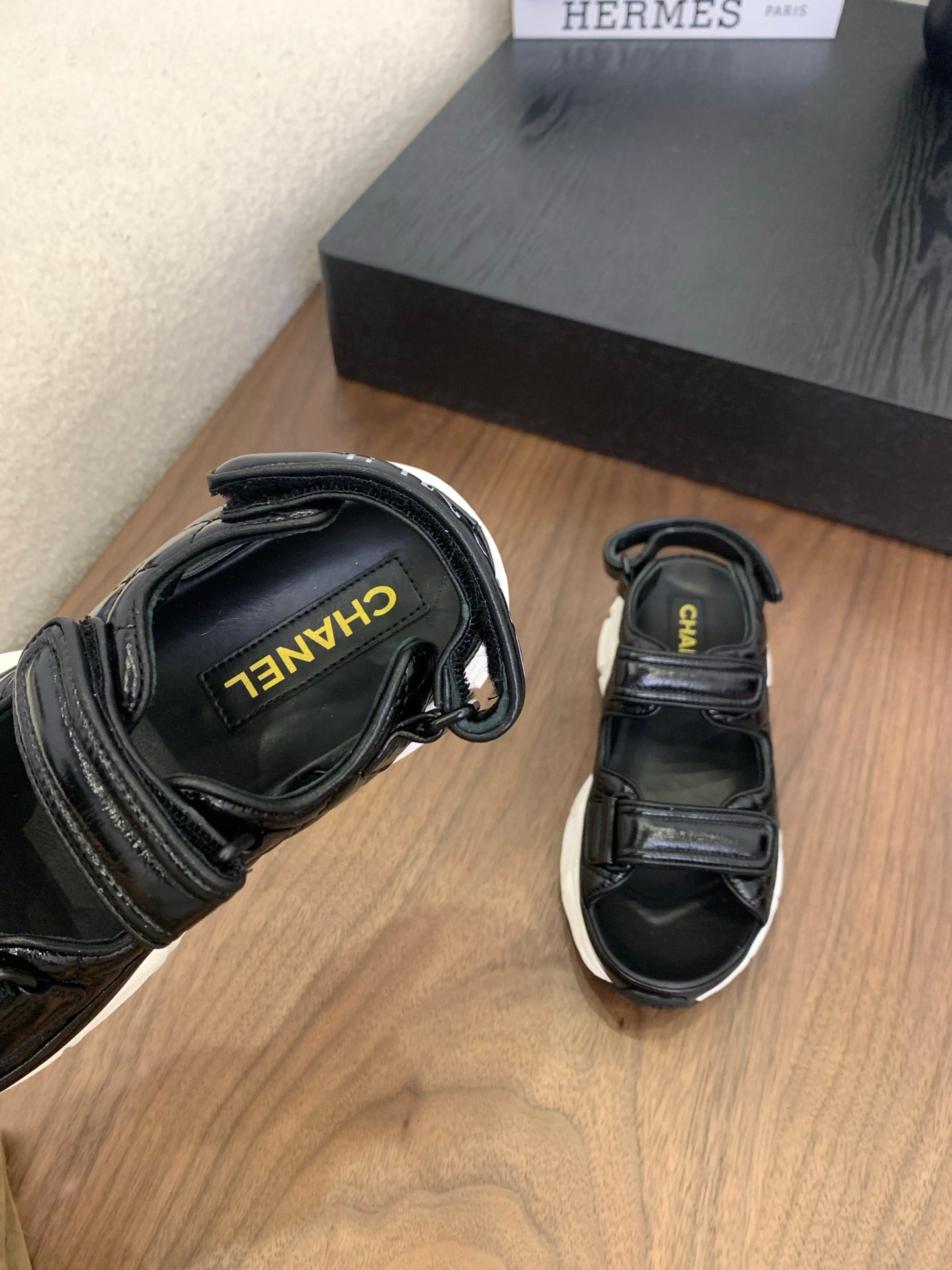 CC Toe Sandals Black With White Patent Leather 299544