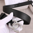 CC WOMEN'S BELT 3.0CM BUCKLE BLACK PEARL LEATHER