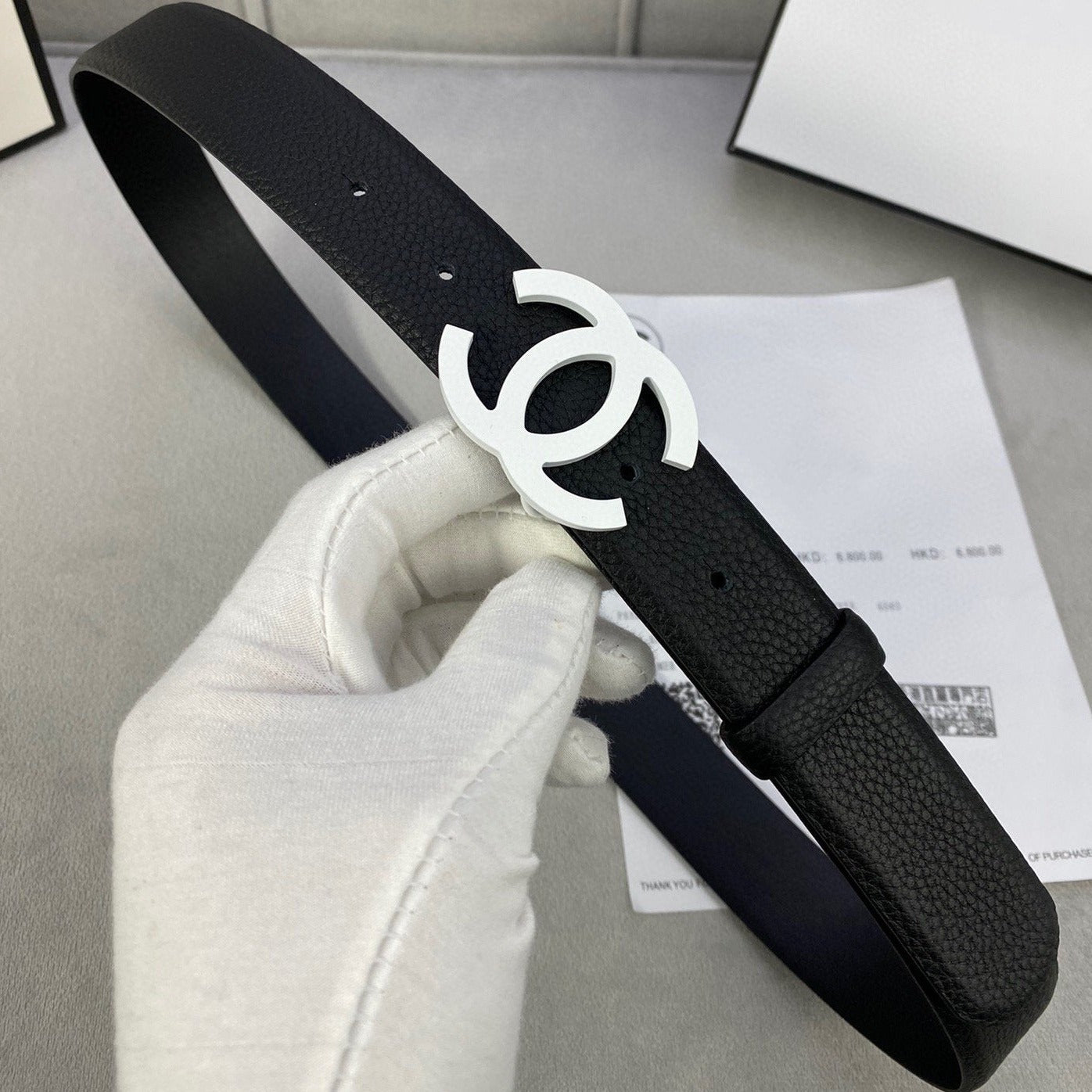 CC WOMEN'S BELT 3.0CM LEATHER EPSOM BLACK BUCKLE SILVER