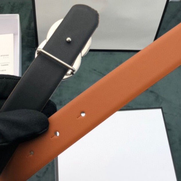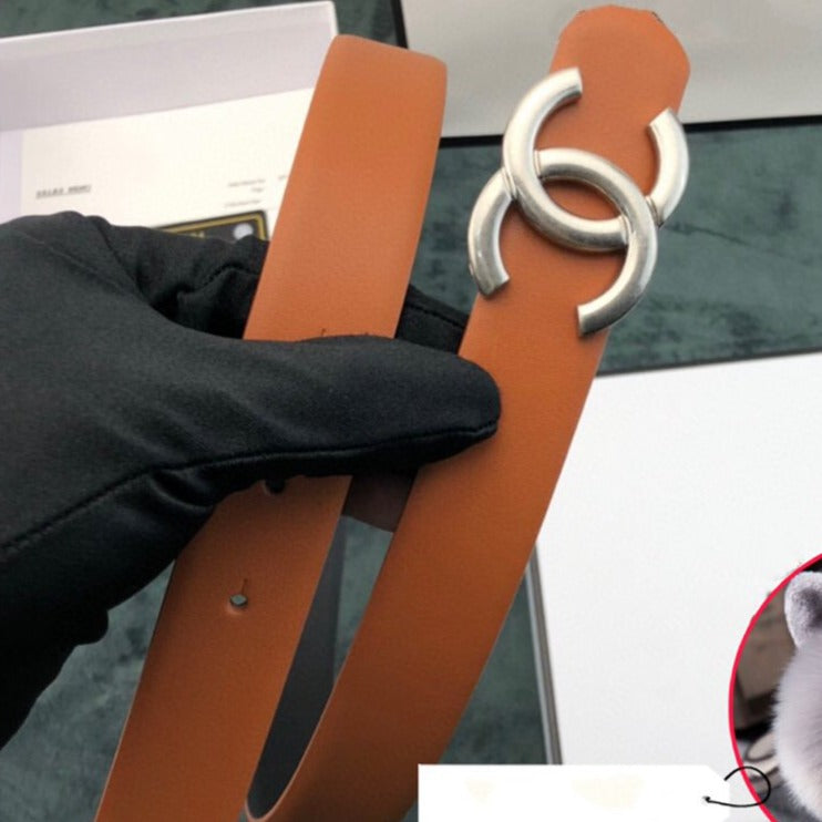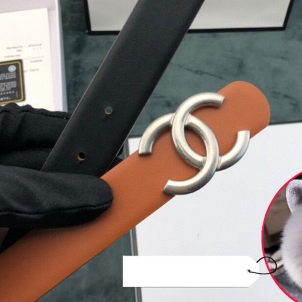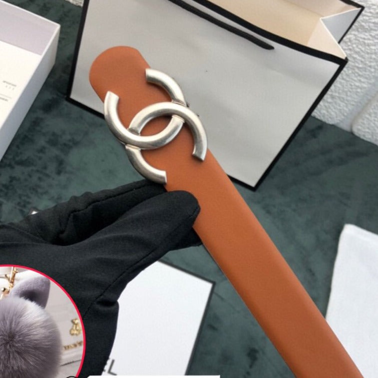 CC WOMEN'S BELT 3.0CM LEATHER BROWN BUCKLE SILVER