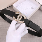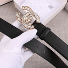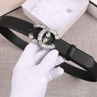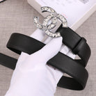 CC WOMEN'S BELT 30MM LEATHER BLACK BUCKLE STAR DIAMOND