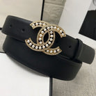 CC WOMEN'S BELT 30MM LEATHER BLACK BUCKLE GOLD PEARL DIAMOND
