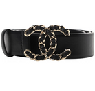 CC WOMEN'S BELT 30MM LEATHER BLACK BUCKLE SILVER BLACK