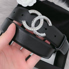 CC WOMEN'S BELT 30MM LEATHER BLACK BUCKLE SILVER DIAMOND CARO
