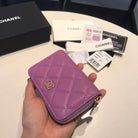 CC ZIPPED CAVIAR PURSE 11 PURPLE CALFSKIN GOLD ICON