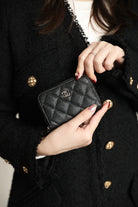 CC ZIPPED COIN BASIC PURSE 11 BLACK CALFSKIN SILVER ICON