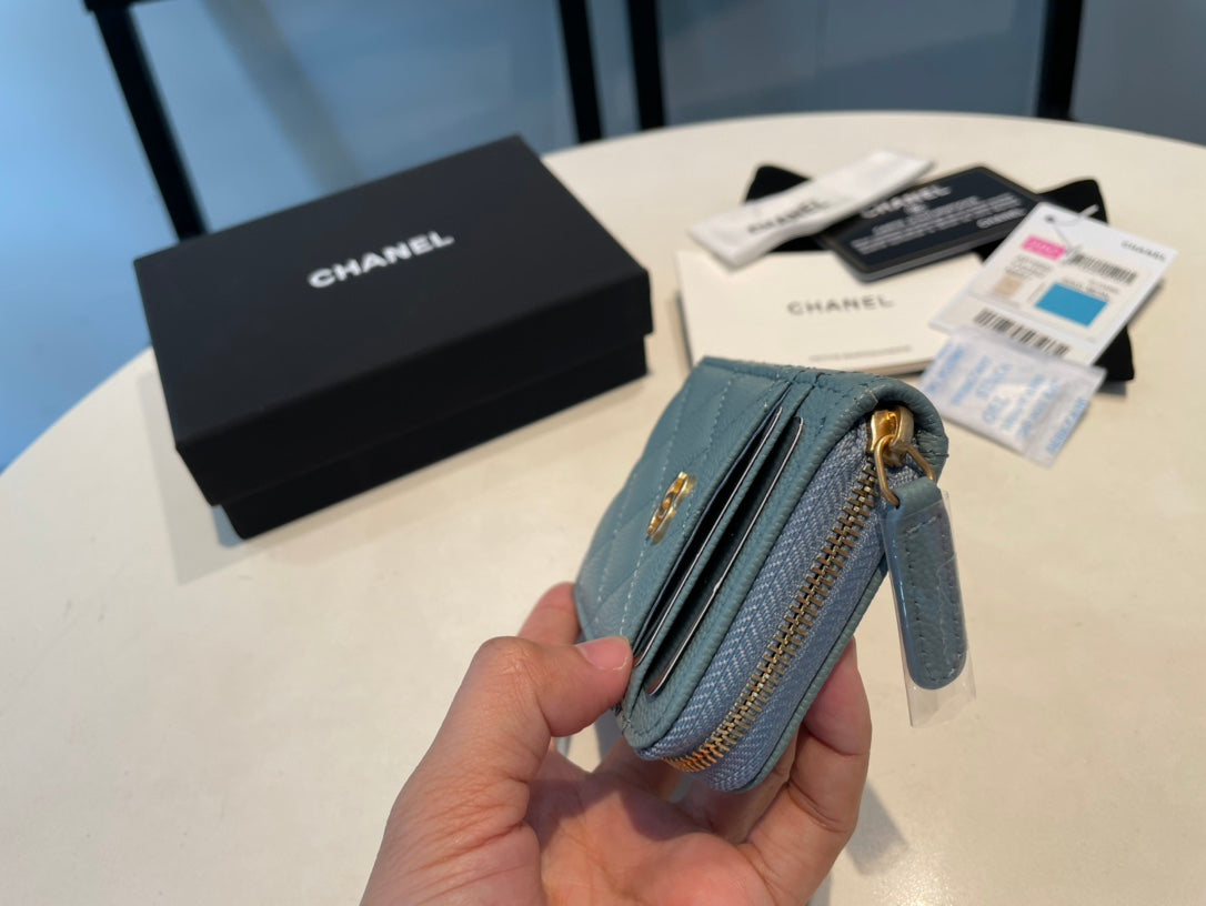 CC ZIPPED COIN PURSE 11 TEAL GRAINED CALFSKIN