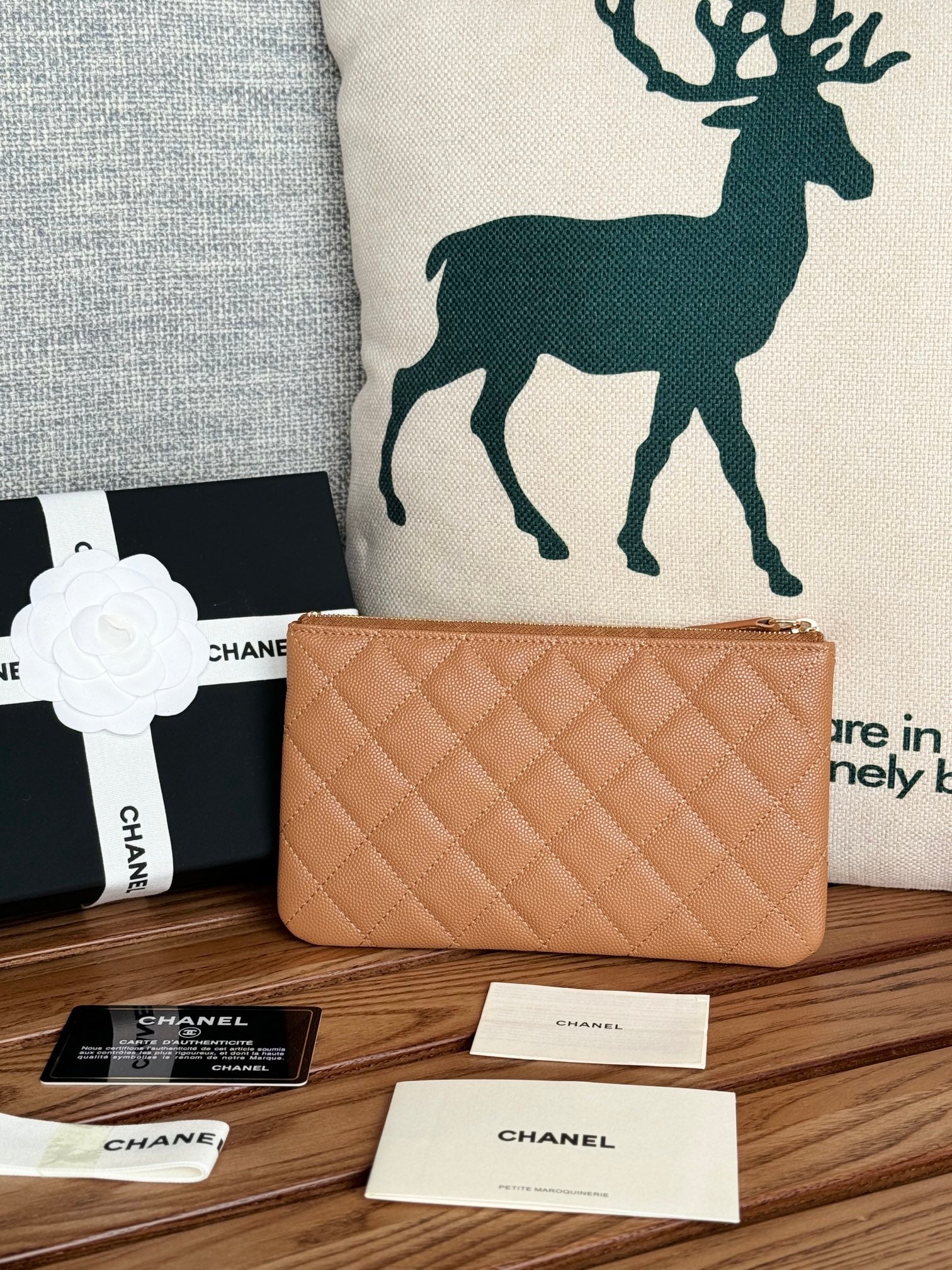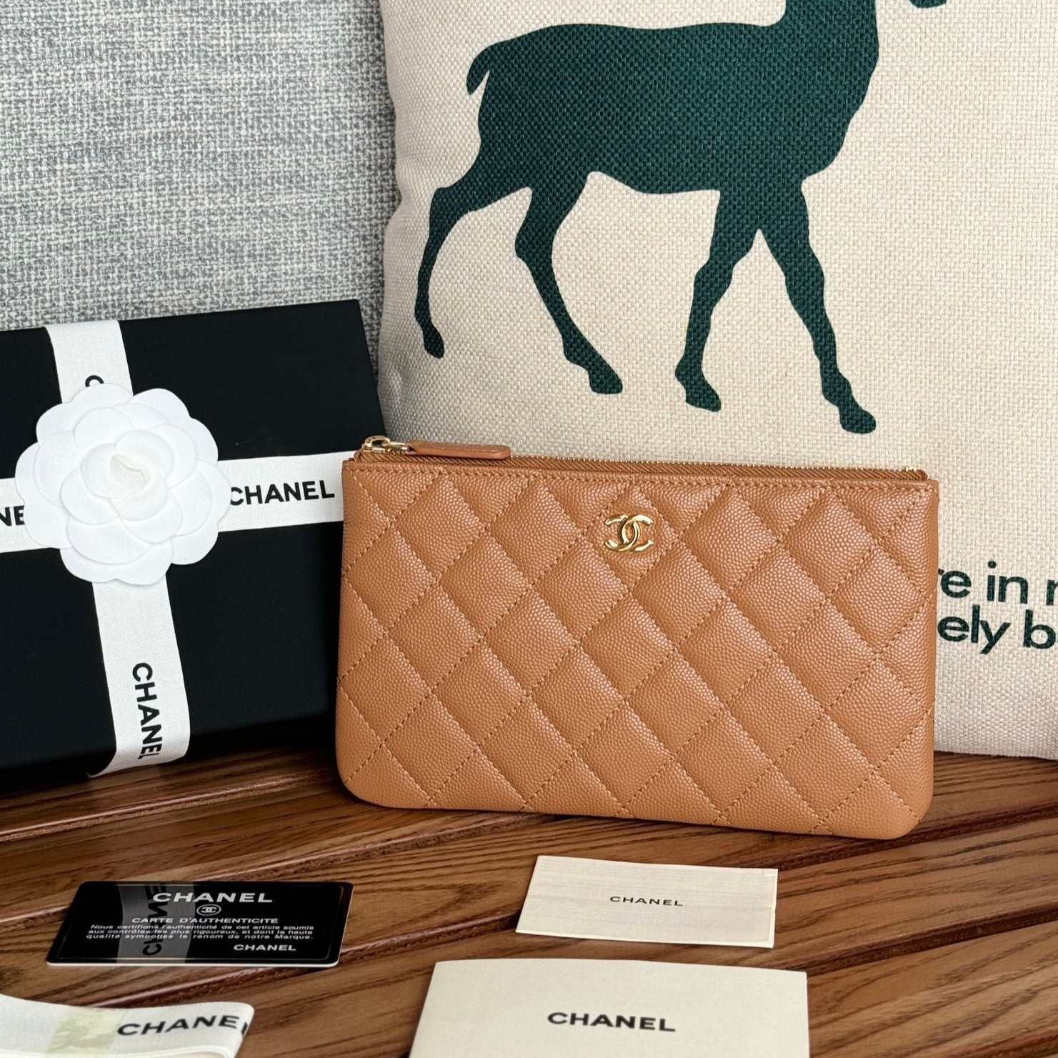 cc zipped wallet 20cm brown quilted caviar gold hardware