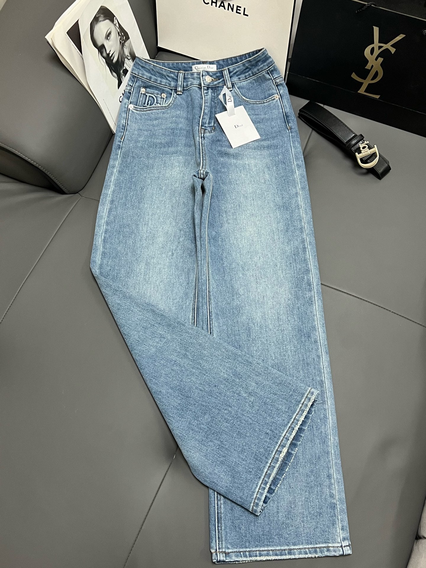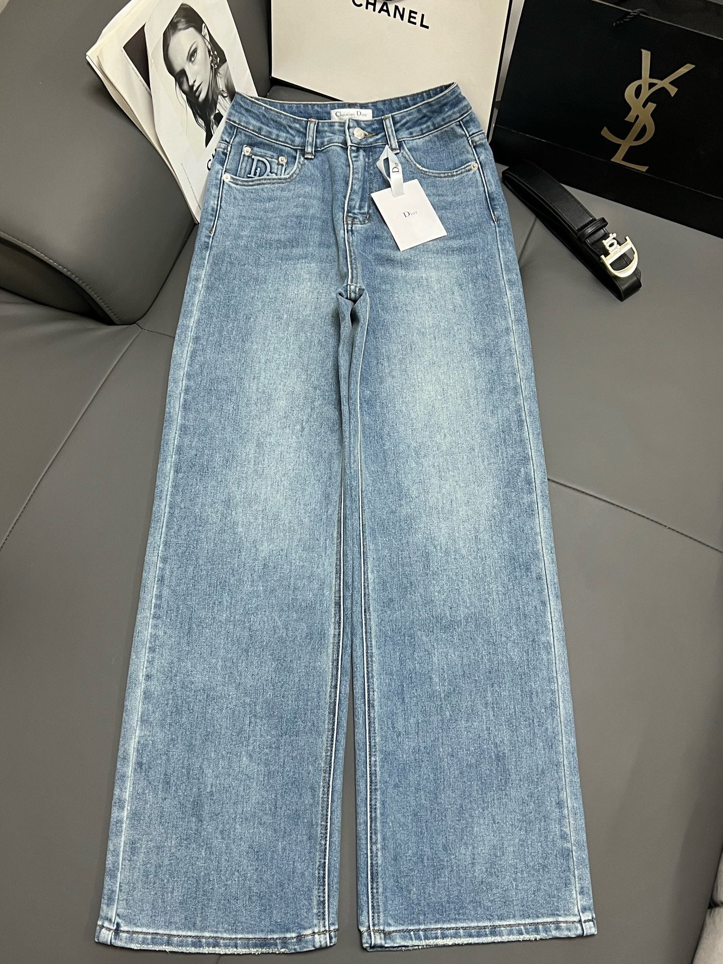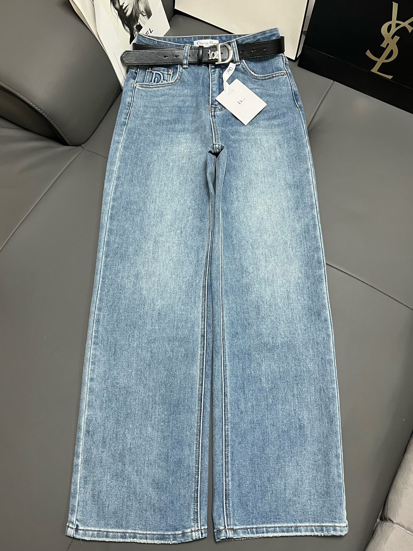 CD 2025 Belt Straight Slightly Stretch Jeans Denim Blue Cotton 109045